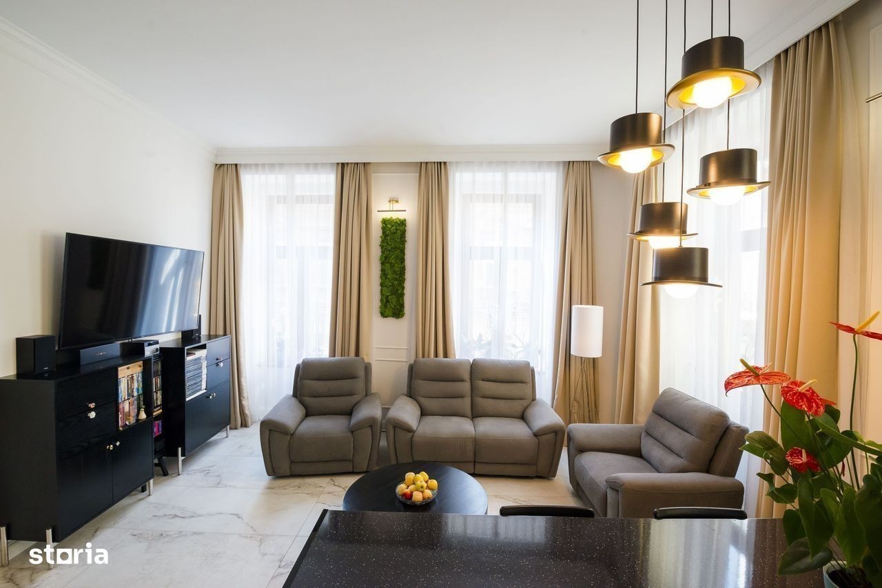 Îți dorești un apartament ultramodern, la cheie, în centrul orașului? Te uiți în locul potrivit! PropertyLab îți oferă spre închiriere un apartament cu 5 camere, situat la etajul 1 pe strada Mihai Eminescu. Acest imobil generos cu o suprafață utilă de 132mp este total decomandat și este compus din: - living cu bucătărie open space - 1 dormitor matrimonial cu dressing - 2 dormitoare - 1 birou - 2 băi - hol - anticameră - 2 spații de depozitare - debara - boxă. Facilități: - încălzirea în pardoseală și sistemul de climatizare inteligent oferă un nivel ridicat de confort termic, ele fiind monitorizate electronic prin aplicație pentru telefonul mobil - elementele de design interior atent selectate îți asigură un ambient confortabil și occidental - supravegherea video la intrarea în apartament, conectată la o firmă de pază și protecție sporește sentimentul de siguranță și securitate - aspirarea imobilului se realizează centralizat prin prize și tubulatură ce conduce praful în exteriorul apartamentului, asttfel că este mai eficientă și ușoară curățarea lui Toate aceste caracteristici contribuie la un stil de viață modern și confortabil. Apartamentul deține toate electrocasnicele necesare: mașină de spălat haine, uscător de rufe, mașină de spălat vase, frigider, televizor, aparat de cafea, cuptor electric, cuptor cu microunde. Dacă dorești să ai tot confortul și te vezi locuind aici, nu mai aștepta! Sună acum! Raluca Marinescu - consultant imobiliar
