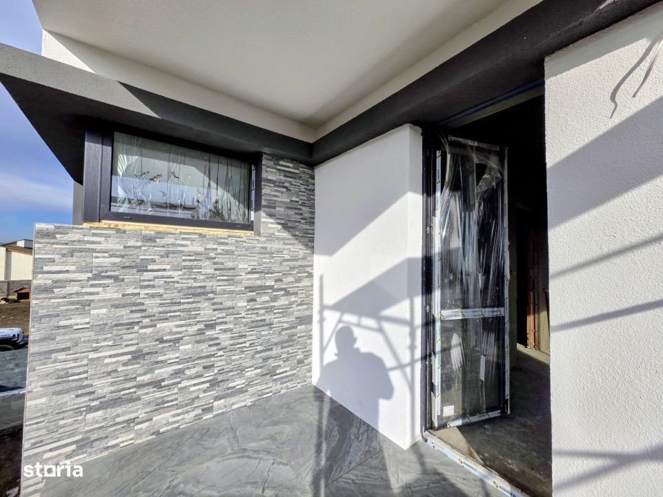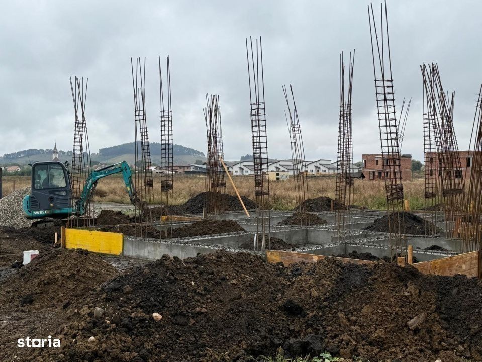 Casă modernă P+E de vânzare în Sânpetru - teren 500 m², Vă propunem spre achiziție o proprietate deosebită, amplasată într-o zonă liniștită și aerisită din Sânpetru, ideală pentru cei care își doresc confort, intimitate și o curte generoasă. Date generale: • Teren: 500 m² • Curte liberă: 290 m², perfectă pentru grădină, terasă exterioară sau loc de joacă pentru copii • Amprentă la sol: 101,10 m² • Suprafață desfășurată: 202,20 m² (parter + etaj) • Terasă: 20,94 m² • Balcoane: 14,86 m² (fiecare dormitor cu balcon propriu); • 2 locuri de parcare Compartimentare Parter (74,54 m² utili): La parter, spațiile sunt gândite pentru funcționalitate și relaxare: • Living generos, 38,64 m², cu acces direct pe terasa de 20,94 m² - un loc ideal pentru seri liniștite în familie • Bucătărie separată, 12,78 m², cu cămară de 3,50 m² - spațiu practic pentru organizare • Baie modernă de 5,74 m² • Hol de 10,62 m² • Spațiu de depozitare de 2,35 m² Etaj (78,54 m² utili): Etajul oferă intimitate și camere luminoase, fiecare cu acces la balcon: • Dormitor matrimonial 20 m² + balcon generos de 16,15 m² • Dormitor 16,63 m² + balcon 3,44 m² • Dormitor 15,68 m² + balcon 5,27 m² • Două băi spațioase: 6,32 m² și 5,87 m² • Hol + casă scării 14,07 m² Stadiu construcție: Casa se află în prezent la stadiu de fundație (proiect în lucru), oferind posibilitatea viitorului proprietar de a personaliza finisajele și detaliile interioare după propriul stil. Avantaje: • Curte generoasă de 290 m² - perfectă pentru grădină, foișor, spațiu de relaxare sau piscină • Trei dormitoare, fiecare cu balcon propriu • Living cu acces la terasă • Bucătărie separată, nu open space - rar întâlnită la construcțiile noi • Zonă liniștită, cu acces facil către Brașov Pret 227.500 Euro + TVA (275.000 Euro TVA inclus); Pentru detalii suplimentare și programarea unei vizionări, vă stăm la dispoziție folosind formularul de contact.