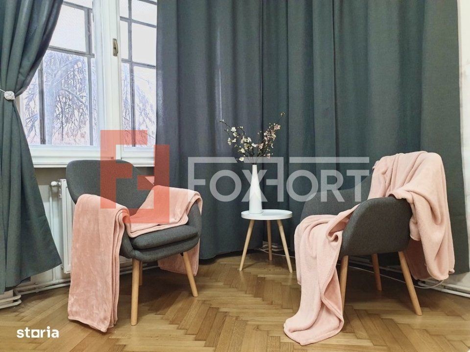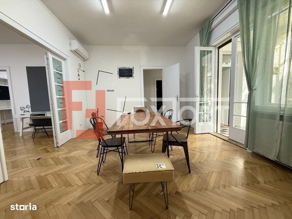 Apartament cu 4 camere de vanzare in Timisoara, zona Centrala. FOXFORT propune spre vanzare un apartament deosebit, cu personalitate si sarm, situat in inima Timisoarei, in zona centrala, ideal pentru cei care isi doresc confort, spatiu si acces rapid la toate punctele de interes ale orasului. Apartamentul este circular, are 4 camere generoase, cu o suprafata utila de 132 mp si 2 balcoane cu suprafata totala de 22 mp, perfecte pentru relaxare. Imobilul este situat la parterul unei cladiri istorice elegante, construita in 1940, avand regim de inaltime Parter + 2 Etaje. Constructia este solida, avand structura de beton si zidaria din caramida. Atmosfera interioara este luminoasa, spatiile bine compartimentate, ideale pentru locuinta de familie sau investitie (Imobilul are deja chiriasi care subinchiriaza in regim hotelier, iar cei care doresc pot prelua spatiul cu tot cu chiriasi). Apartamentul este structurat astfel: - Hol; - Bucatarie; - Baie; - Toaleta de serviciu; - Living cu balcon; - Camera dining cu balcon; - 2 Dormitoare; - Hol intermediar. Finisajele interioare sunt clasice: - Usa intrare: lemn; - Usi interioare: lemn; - Tamplarie ferestre: lemn si PVC la balcoane; - Podele: parchet, gresie. Apartamentul se vinde mobilat si utilat: plita, cuptor, hota, masina de spalat rufe, masina de spalat vase, frigider cu congelator, uscator de rufe. Incalzirea se realizeaza prin intermediul centralei proprii prin calorifere. Apartamentul dispune de sistem de climatizare (A.C.), de o debara si o boxa la demisol, inscrisa in Cartea Funciara. Pretul este de 298.990€ - COMISION 0%. Se accepta ca si modalitate de plata surse proprii sau credit bancar. Indicator performanta energetica: Clasa B ID intern: V8739
