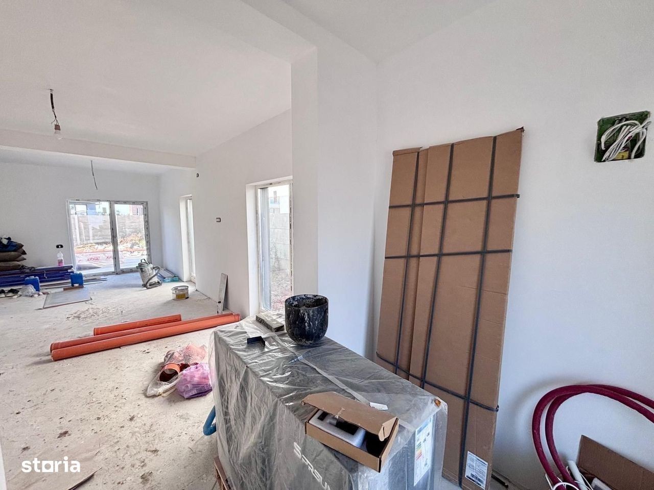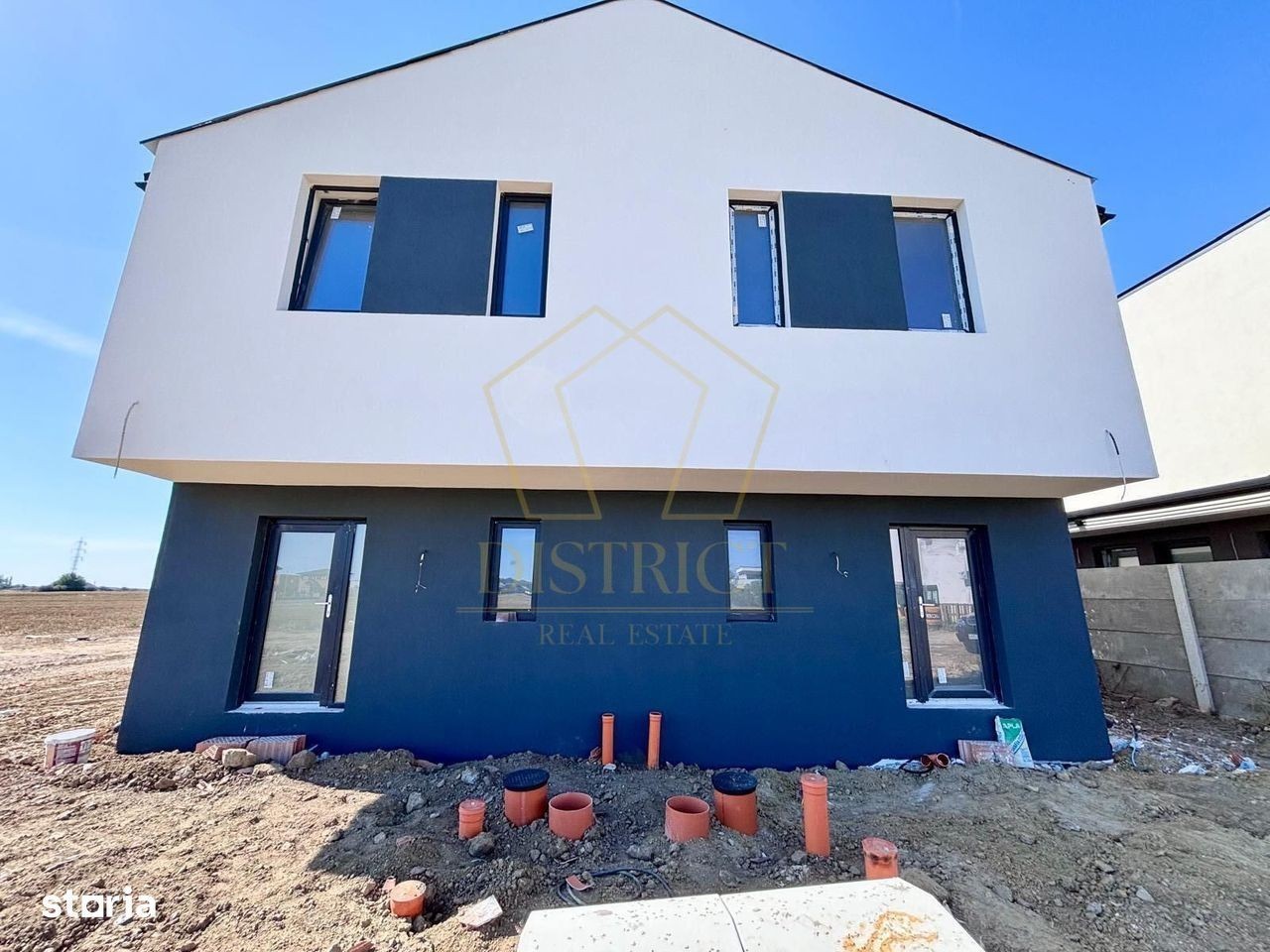 District Real Estate va prezinta spre vanzare un duplex nou cu 4 camere, situat in Giroc, mai exact pe strada Neajlovului. Casa se desfasoara pe o suprafata utila de 100mp si este amplasata pe un teren de 250mp. Confortul termic se realizeaza prin pardoseala, cu ajutorul pompelor de caldura. Imobilul beneficiaza de panouri fotovoltaice! Compartimentarea se prezinta astfel: PARTER: - Hol intrare - Living open-space cu bucataria - Baie cu dus - Camera tehnica - Terasa ETAJ: - Dormitor matrimonial 14mp - Birou - Dormitor 13mp - Baie Mai multe detalii: - Clasa energetica A! - Tamplarie Tripan REHAU - Invertoare HUAWEI - Panouri fotovoltaice 5-6 kW si dosar prosumator! - Tigla de beton - Izolatie exterioara cu polistiren 10cm - Curtea va fi amenajata cu gazon si plante ornamentale - Zid antifonat intre apartamente - Pod izolat cu spuma - Termen de finalizare noiembrie-decembrie 2025. Pretul este de 170.000 euro la cheie, cu tva inclus. Nu se percepe comision! Sunt disponibile ambele jumatati. Oferim consultanta si solutii financiare in vederea obtinerii unui credit imobiliar avantajos, cu ajutorul colaboratorilor nostri. Pentru vizionari si alte detalii va stam la dispozitie.