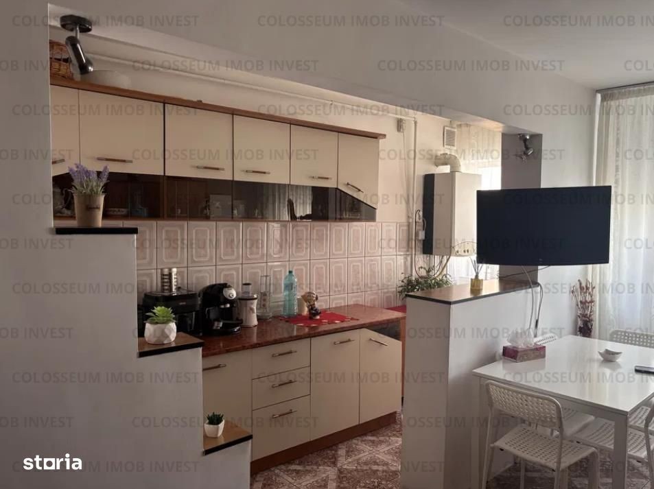 Vă propunem spre vânzare un apartament cu 2 camere, decomandat, situat la etajul 4 4, cu o suprafață utilă de 50 mp, la care se adaugă un balcon de aproximativ 5 mp. Locuința este compartimentată eficient și este formată din: living, dormitor, bucătărie, hol, baie și balcon. Se vinde complet mobilat și utilat, conform fotografiilor. Bucătăria rămâne complet echipată - mobilă, aragaz, frigider, hotă, masă cu scaune, sunt incluse, de asemenea, mașina de spălat și televizorul. Dotări și avantaje: Centrală termică în condensare, geamuri termopan, gresie, faianță, parchet, bloc izolat termic exterior, hidroizolație nouă la acoperiș, boxă la subsol aprox. 20 mp Apartamentul este situat într-o zonă foarte bună, la doar 5 minute de mers pe jos de Mall AFI, cu acces rapid la transport public, magazine, școli și alte puncte de interes. Ideal pentru locuință sau investiție. Pentru mai multe detalii sau pentru programarea unei vizionări, vă stau la dispoziție telefonic. ID intern: RTI7532
