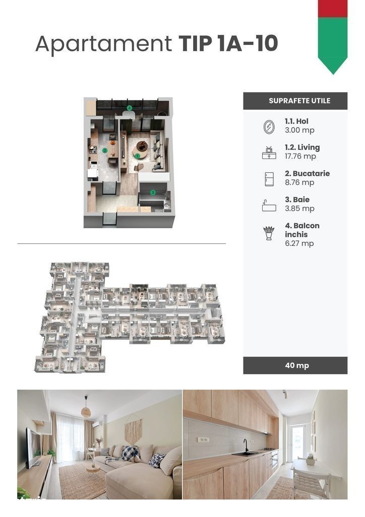 GARSONIERA TIP 1A-10 / 1A-15 Suprafata utila totala: 40,00 mp