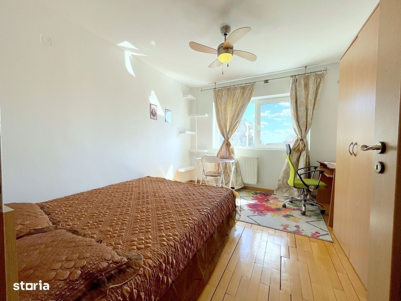 De inchiriat apartament cu 3 camere, decomandat, situat in zona Simion Barnutiu - Timisoara, avand o suprafata utila de 83 mp si dispunand de urmatoarea compartimentare: - living cu balcon inchis in sistem PVC si incorporat in suprafata utila - dormitor matrimonial cu balcon inchis in sistem PVC si incorporat in suprafata utila - dormitor secundar - bucatarie cu zona de luat masa si balcon inchis in sistem PVC si incorporat in suprafata utila - baie (dus walk-in) - grup sanitar (WCS) - antreu - hol tranzit Apartamentul dispune de toate utilitatile prezente, incalzirea realizandu-se de la reteaua de termoficare a orasului.