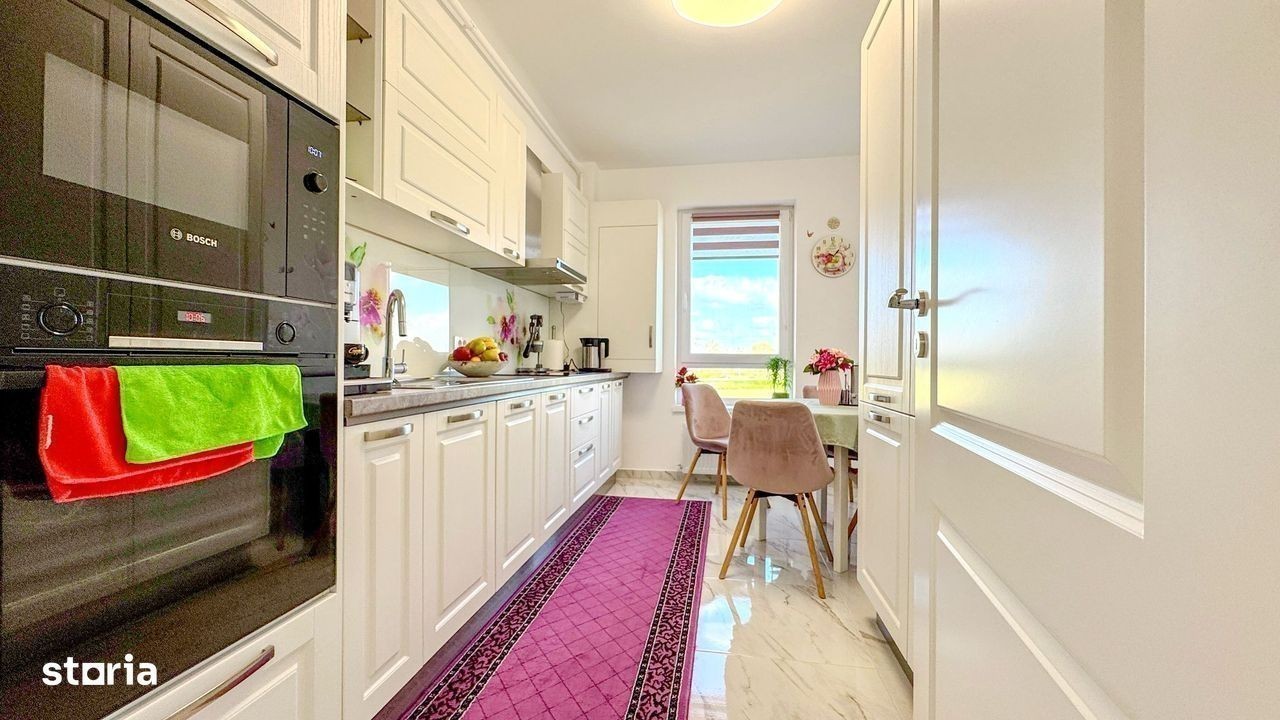 Va propunem spre achiziție un apartament cu 3 camere, situat pe Strada Ghimbavului, în localitatea Cristian, județul Brașov. Proprietatea este amplasată la etajul 1 al unui imobil finalizat în anul 2022, cu regim de înălțime P+3E, într-un ansamblu rezidențial modern și bine întreținut. Locuința dispune de 81 mp utili, compartimentare decomandată și beneficiază de orientare estică, ceea ce asigură lumină naturală plăcută în prima parte a zilei.