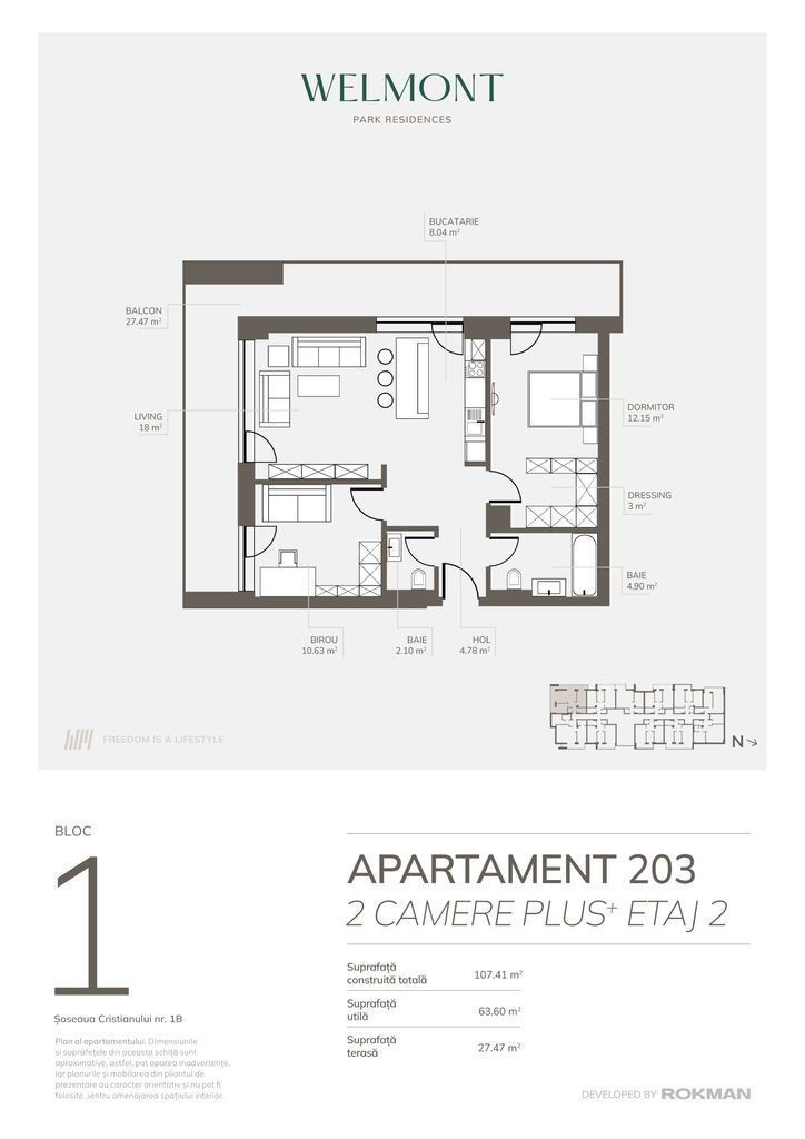 Dezvoltator Apartament doua camere plus Welmont/Rokman