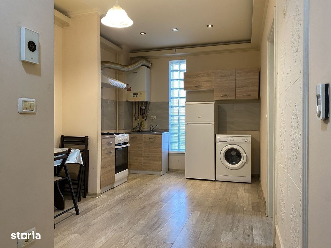 IMOBLU oferă spre vânzare apartament cu 1 cameră, 28.48mp, Et. 1/4 cu lift, constructie 2014, la 5 minute de Shopping City, compartimentat astfel: - hol acces - baie - bucătărie cu cameră de zi - dormitor matrimonial Apartamentul se vinde complet mobilat și utilat. - centrală termică cu încălzire în pardoseală și termostat de ambient. - aragaz - hotă - frigider - mașină de spălat - internet + TV - patul și salteaua sunt noi Detalii pret: 59.500€ Comision 2.5%