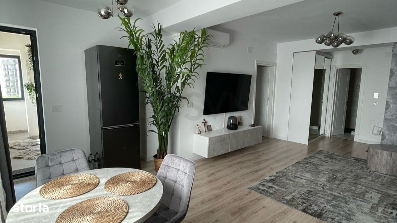 REA1025723 SVN Residentialist Pipera va propune spre inchiriere un apartament cu 2 camere, aflat la prima inchiriere, situat in zona Rond OMV Pipera. Locuinta este complet utilata si mobilata, oferind un nivel ridicat de confort prin incalzirea in pardoseala, doua aparate de aer conditionat, doua televizoare LED Smart de 163 cm, aparat de cafea, masa si fier de calcat, aspirator, hota, aragaz, frigider, masina de spalat si lodgy cu incalzire. Apartamentul se afla intr-o locatie excelenta, cu acces rapid catre principalele centre de birouri din Pipera, scoli private, restaurante, zone comerciale si mijloace de transport. Zona se remarca prin liniste, siguranta si legatura directa atat cu centrul Bucurestiului, cat si cu zona de nord a capitalei. SVN Residentialist va asteapta la vizionare pentru a descoperi avantajele acestei oferte.