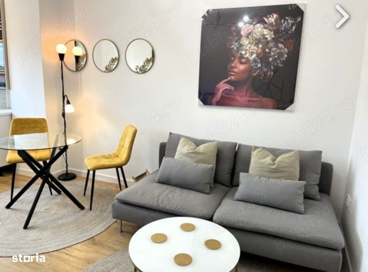 Studio modern de închiriat - IVORY Residence, Bulevardul Pipera nr. 1 Zona Rond OMV | Construcție nouă (2024) | Etaj 3 | Preț: 540€ / lună Oferim spre închiriere un apartament tip studio (living cu bucătărie open space + dormitor separat), situat în complexul rezidențial IVORY Residence, finalizat în 2024. Apartamentul se află la etajul 3, este complet mobilat și utilat, ideal pentru un stil de viață modern și confortabil. Detalii apartament: Suprafață optim compartimentată: living cu bucătărie, dormitor separat și baie Încălzire în pardoseală cu centrală proprie Aer condiționat în fiecare cameră Pat Super King (180x200 cm) Dulap generos: 200 x 60 x 237 cm Electrocasnice: mașină de spălat, frigider, plită cu inducție, cuptor electric, cuptor cu microunde, aspirator, uscător de păr TV Smart 4K 140 cm în living + TV Smart în dormitor Facilități complex: Spații verzi și parculeț amenajat Teren multisport, pistă de alergare, loc de joacă pentru copii Acces controlat cu barieră, pază permanentă 24/7 Terasă comună în apropierea apartamentului Localizare excelentă: 1 min de Lidl și Pipera Plaza 5 min cu mașina până la Promenada Mall, Parcul Herăstrău, Metrou Aurel Vlaicu Acces rapid la mijloace de transport, restaurante, școli și grădinițe de top Condiții de închiriere: Contract minim 1 an 1 lună chirie + 1 lună garanție Parcarea nu este inclusă în preț Nu se acceptă animale de companie Fumatul nu este permis în apartament (există terasă comună în apropiere)