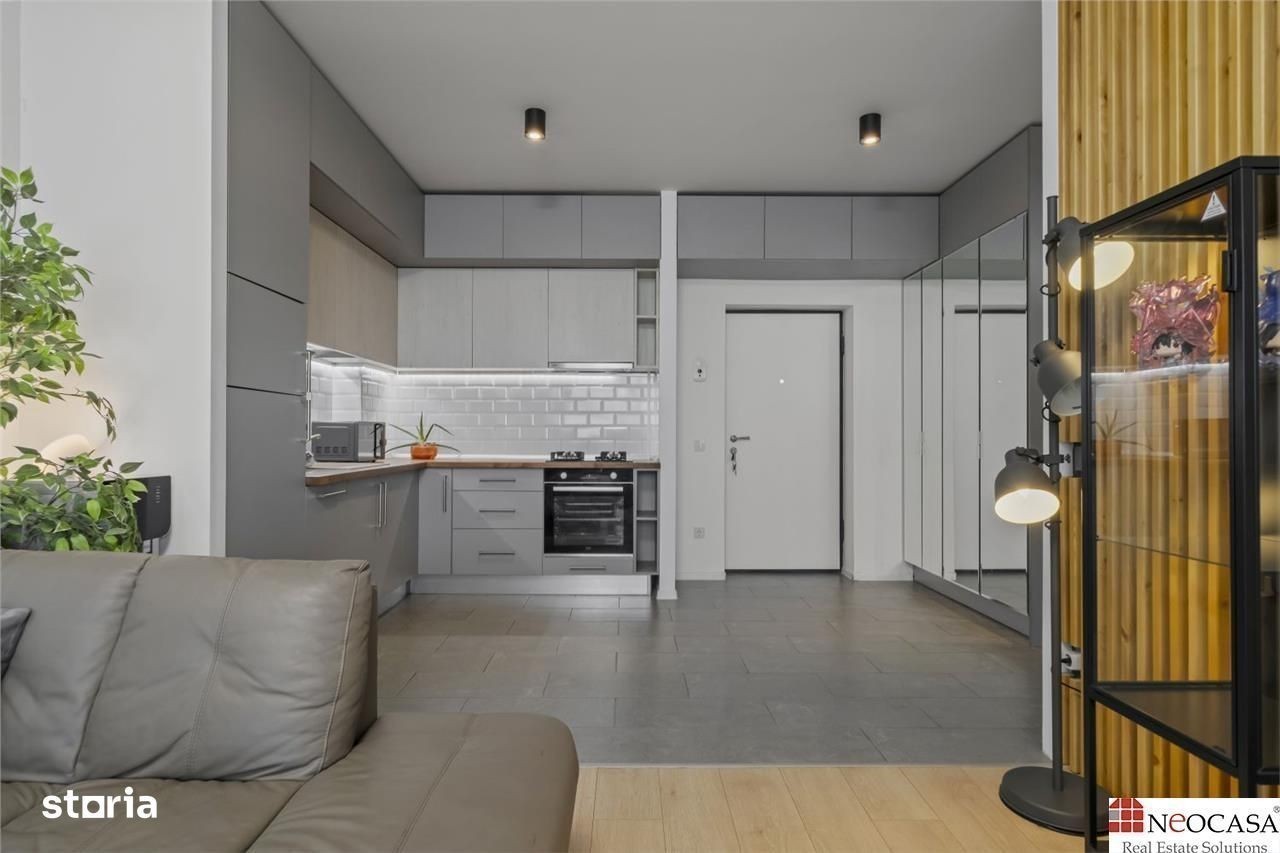 Neocasa va propune spre vanzare un apartament modern de 2 camere, situat in faza II a ansamblului rezidential Atria Urban Resort. Pozitionat in zona de nord-vest a Capitalei, Atria Urban Resort reprezinta unul dintre cele mai ample proiecte de regenerare urbana, conceput pentru a oferi locatarilor un stil de viata echilibrat, prin combinarea spatiilor verzi generoase cu avantajele proximitatii fata de mijloace de transport in comun si centre comerciale importante. Apartamentul prezentat se afla la etajul 3 si dispune de o suprafata utila de 54 mp, completata de un balcon de 5 mp, accesibil atat din zona de zi, cat si din dormitor. Orientarea sud-vestica si suprafetele vitrate ample asigura lumina naturala pe intreaga durata a zilei, accentuand caracterul aerisit al locuintei. Finisajele si dotarile confirma standardele ridicate ale proiectului, printre acestea numarandu-se centrala proprie Bosch, sistem de incalzire prin pardoseala Kermi completat de calorifer portprosop in baie, tamplarie exterioara Salamander cu geam tripan si usi interioare Pinum. Proprietatea se vinde complet mobilata si utilata, fiind astel o alegere ideala atat pentru rezidenta personala, cat si pentru investitie. De asemenea, oferta include si un loc de parcare. Pentru informatii suplimentare si vizionari, va rugam sa ne contactati.