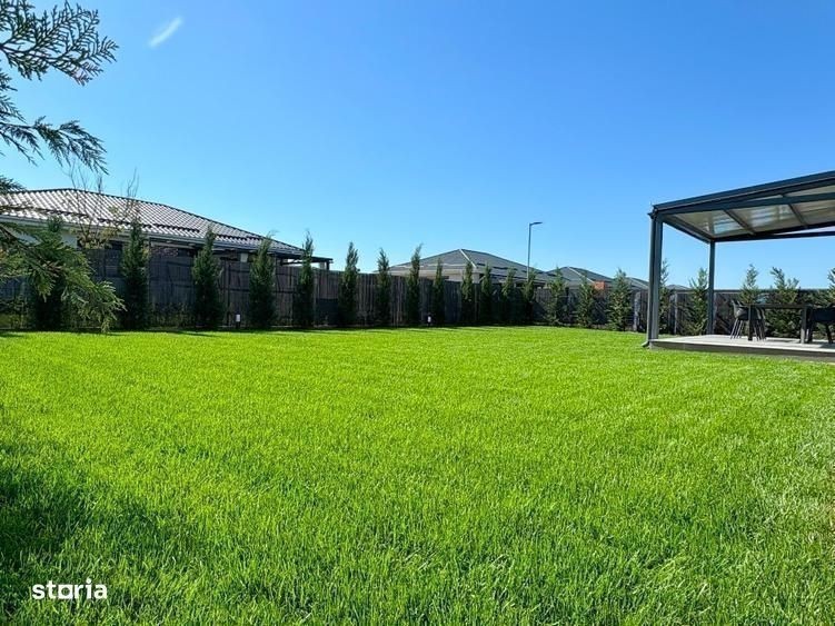 PROPRIETAR, vila parter 4 cam/2 bai, complet mobilata/echipata, gata de mutare, Vrei o casă unde să te muți imediat, fără stresul șantierelor și fără investiții suplimentare? Se vinde o vilă parter modernă în Balotești (zona șos.Pipera-Tunari), construită în 2024 pe un teren de 510 mp, intr-un complex rezidențial de ultimă generație. Vila se vinde complet echipată și mobilată, cu dotări și finisaje premium, curte generoasă și amenajată integral. Totul este nou-nouț, pregătit pentru locuit și complet funcțional. Toate etapele consumatoare de timp și energie au fost deja bifate: selecția materialelor, instalarea sistemelor, mobilarea, decorarea la interior, amenajarea exterioară. Pentru tine, asta înseamnă un cămin complet finalizat, fără surprize, unde investiția de timp, bani și know-how a fost deja făcută. Date generale - suprafață utilă: 114 mp - teren: 510 mp (curți construcții, intravilan); constructii adiacente pe toate laturile - nu va mai exista niciun santier in vecinatate - terasa 18 mp acoperita cu pergola - 4 camere si 2 băi + pod, cameră tehnică - persoană fizică (nu se aplică TVA suplimentar, preț final) - construcție: cadre din beton și zidărie Porotherm; garanție dezvoltator pe toată durata de viață a construcției - an finalizare: 2024 - izolație: polistiren 15 cm - tâmplărie PVC cu geam tripan, plase insecte - acoperiș din țiglă metalică, placă de beton peste parter - pod pe toată suprafața casei, accesibil prin scară retractabilă, ideal ca spațiu suplimentar de depozitare Echipamente și dotări - încălzire în pardoseală (10 trasee) cu apă demineralizată și tratament anti-alge, termostat wireless - dedurizator Romstal Vision + filtru suplimentar - centrală termică Saunier Duval 24 kW - 4 aparate de aer condiționat, câte 12.000 BTU fiecare - răcire eficientă în toată casa - pardoseală SPC, gresie/faianță rectificate - obiecte sanitare Roca, băi cu dotări suplimentare pentru confort - sistem de alarmă Ajax cu senzori de mișcare, telecomandă și keypad - camere video pe toate lateralele exterioare - cu alertă mișcare, înregistrare și comunicare bidirecțională - iluminat exterior pe fațadă și grădină Interior - Living amenajat cu canapea extensibilă, TV Philips Ambilight 164 cm, sistem iluminat Paulmann (sine + spoturi + pandantive), zona dining 4 persoane - Bucătărie: complet mobilată, electrocasnice Whirlpool (plita, hotă, cuptor, microunde, mașină de spălat vase), frigider încorporat - Dormitor matrimonial: pat 180x200 cu saltea premium cu memorie și zone de susținere ergonomice, dressing, baie proprie dotată cu cadă, obiecte sanitare Roca, duș igienic suplimentar - Două dormitoare secundare complet mobilate și utilate, cu destinații flexibile (cameră de copii, birou, cameră de hobby, oaspeți etc) - Baie pe hol dotată cu cabină de duș walk-in + duș igienic - Cameră tehnică / laundry: mașină spălat rufe cu uscător, mobilier depozitare, blat de lucru, filtru de apă + dedurizator Romstal Vision - Hol complet mobilat, spații de depozitare Exterior - 2 locuri de parcare în fața casei + alee acces pietonal - terasă cu pergolă acoperită, cu sistem preluare ape pluviale - teren 510 mp complet amenajat - gazon rulouri + gard viu din chiparoși Leylandii pe tot perimetrul - amenajare peisagistică la fațadă - sistem de irigație Hunter wireless, cu zone separate (aspersoare + picurare) - gard refăcut - magazie de grădină pentru depozitare Complexul rezidențial - drumuri asfaltate și alei late, generoase (9ml latime) - iluminat public - utilități complete: apă, canalizare, gaz, curent trifazic, internet și CATV - la intrare: easybox, terenuri de sport și loc de joacă pentru copii - magazine și alte puncte de interes în apropiere (Therme, Edeland, DN1 Value Center, Kaufland etc) - acces facil către București cu statie autobuz in fata complexului (448 (Piața Presei - Balotești - Moara Vlăsiei) și 449 (Pipera - Tunari - Dimieni), opțiuni de maxi-taxi, iar prin DN1, A0 sau A3 ajungi rapid atât în centru, cât și în Pipera-Voluntari prin sos Pipera-Tunari. Disponibilă imediat, fără sarcini imobil, credite sau alte complicații.