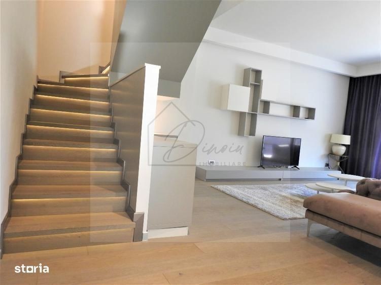 Va ofer spre inchiriere duplex premium cu 4 camere si gradina pe B-dul Erou Iancu Nicolae, in Pipera, intr-o zona rezidentiala verde si foarte selecta, la 150 m de padure, intr-o loctatie care ofera toate facilitatile necsare pentru o viata moderna, activa si confortabila. Pret inchiriere lunar: 3000 EUR plus TVA - contract minim 1 an; plata 1 luna in avans + 1 luna garantie Duplexul este situat la parter, intr-un bloc cu design modern, cu suprafata totala de 212 mp (incluzand terasa si gradina), la numai 150 mp fata de padure, cu o compartimentare eficienta si moderna, dupa cum urmeaza: PARTER: zona de zi incepe cu living si bucatarie, grup sanitar si se continua, prin spatiile vitrate mari, catre terasa si gradina individuala ETAJ: zona de noapte cu 3 dormitoare, fiecare cu baia proprie PARCARE: 2 locuri de parcare subterane incluse in pret Avantaje apartament & bloc: - bloc modern cu doar 9 apartamente superbe, asigurandu-se astfel intimitate maxima - dotari si finisaje de lux - centrala proprie pe gaz - aer conditionat - internet de mare viteza pe fibra optica Failitati locatie: - Lidl este la 350 m; Mega Image, Profi - mijloace de transport STV si STB - aproape de Jolie Ville, Padurea Baneasa, Zoo Baneasa, Ambasada SUA, centrul comercial Baneasa Shopping City - unitati de invatamant private de renume: gradinite, scoli, licee gradinite (Butterfly, Disneyland, Tinker Bell,) Little London, American International School of Bucharest, Liceul Mark Twain, British School, Școala Primară și Gimnazială Avenor College - Academia de Politie - aproape de zona comerciala Baneasa - restaurante, cafenele, magazine, saloane, farmacii, banci, slai de fitness - World Class Atlantis, etc - 15 min pana la Aeroportul Otopeni la 8,4km; aproape de Aeroportul Baneasa la 5km - acces rapid DN1, centura Bucuresti, A0 si A3 Va invit sa programati o vizionare! Alina Dinoiu Pentru mai multe oferte, va invit aici dinoiuimobiliare.ro