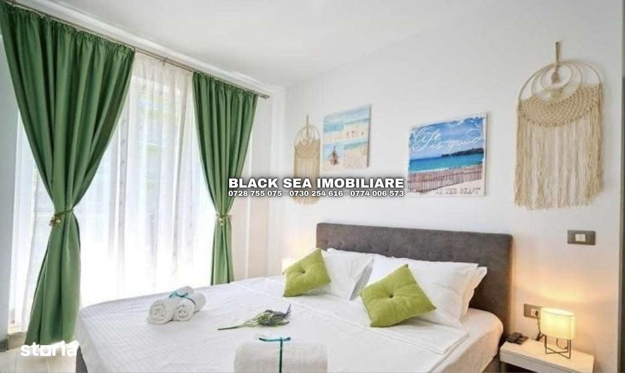 Apartament de lux cu vedere frontală la mare - Alezzi Beach Resort, Mamaia Nord Vă propunem spre vânzare un apartament de lux situat în renumitul complex Alezzi Beach Resort, Mamaia Nord - Năvodari, la doar 20 de metri de plajă. Proprietatea oferă o priveliște superbă către mare, vizibilă din dormitor, living și balcon, fiind ideală atât pentru reședință, cât și pentru investiție cu randament sigur.