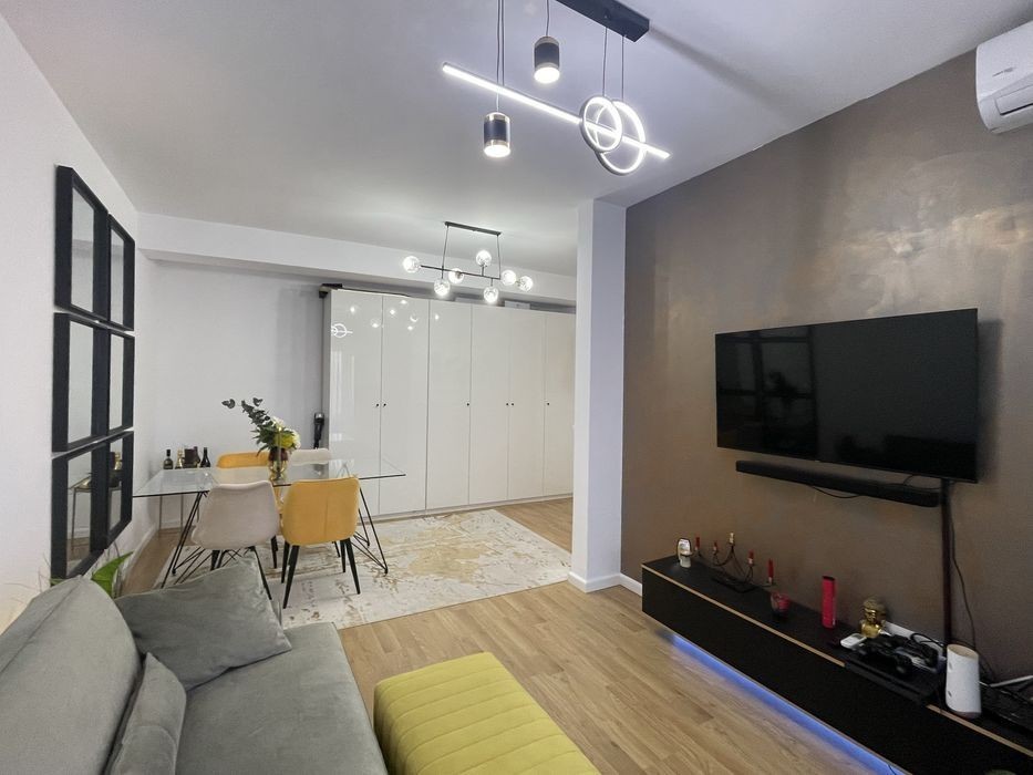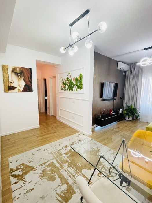 Proprietar, vând apartament cu 2 camere situat pe Bulevardul Pipera, la 2 minute de Scoala Americană 2 terase - terasa mica cu acces din dormitor/terasa mare cu acces din bucătărie și din living Suprafața totală 68.72 mp, din care 14 mp însumează cele 2 balcoane Etajul 1/5 Bloc finalizat in 2021 Complet mobilat și utilat conform pozelor, cu toate electrocasnicele - mașină de spălat, frigider încorporat, mașină de spălat vase încorporată, cuptoare incorporate etc, centrală proprie Zona aerisita (vis-a-vis se afla padurea Baneasa) Proximitati: Mega Image si farmacie la 3 minute de mers pe jos, Lidl, Olga Gudynn, Easybox chiar in fața blocului Nu se percepe TVA! Nu colaborez cu agenții, vă rog să nu insistați!