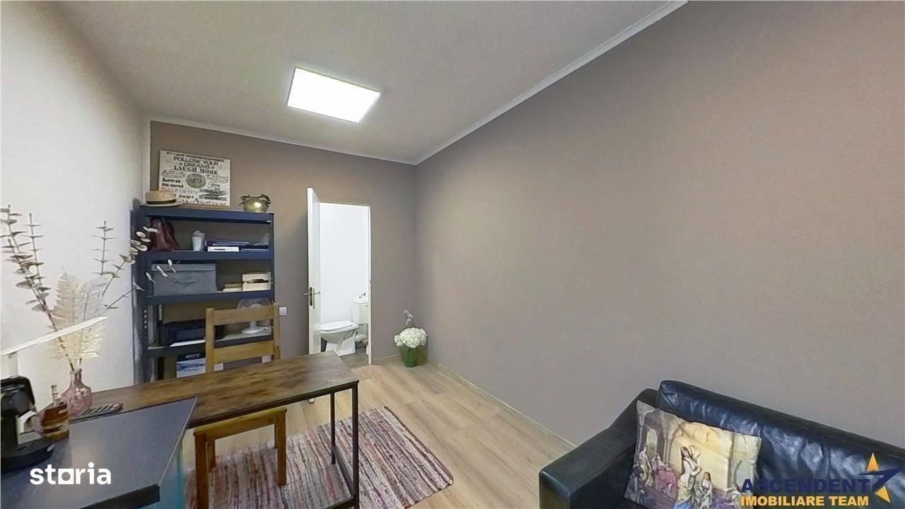 Comision cumparator: 2% + tva, din valoarea de tranzactionare. ASCENDENT IMOBILIARE este onorata sa va propuna spre vanzare un spatiu cu alta destinatie, amplasat intr-un complex rezidential, intr-o zona linistita si sigura, respectiv pe strada Avram Iancu, beneficiind de acces securizat. Desi nu este stradal, pozitionarea ofera intimitate si confort, ceea ce il face perfect pentru activitati ce necesita un mediu profesional si discret. Proprietatea este structurata pe 3 incaperi, cu doua intrari separate. Va invitam sa experimentati o vizionare initiala, pentru doua incaperi, din locatia unde va aflati, chiar acum, prin accesarea tur-ului virtual tridimensional: s: show ?m=UZVDXuhowtz Interiorul este modern, luminos si ergonomic, compartimentare flexibila, adaptabila in functie de specificul activitatii. Podeaua din lemn deschis, peretii cu design contemporan si spatiile deschise creeaza o atmosfera primitoare si productiva. Unitatile sunt recomandate pentru birouri de contabilitate, IT sau consultanta, dar la fel de potrivit pentru cabinete psihologice, de coaching, activitati de wellness, yoga, pilates, fitness personalizat, studio foto-video, showroom, traininguri sau cursuri private. Accesul facil in cadrul complexului, alaturi de siguranta oferita de sistemul de intrare controlata, transforma aceasta oferta intr-o alegere excelenta pentru antreprenori si profesionisti care isi doresc sa ofere clientilor sau colaboratorilor un mediu profesional, discret si modern. Consiler specializat pe aleasa oferta: doamna Daniela Lungu Telefon WhatsApp: