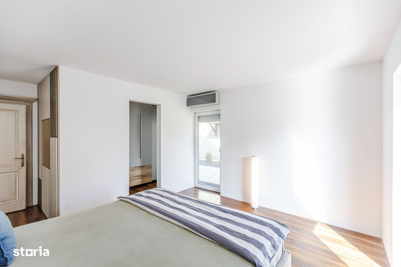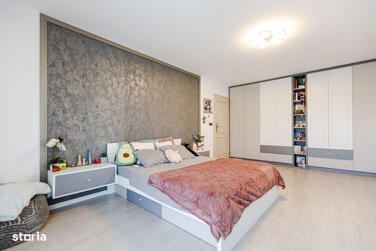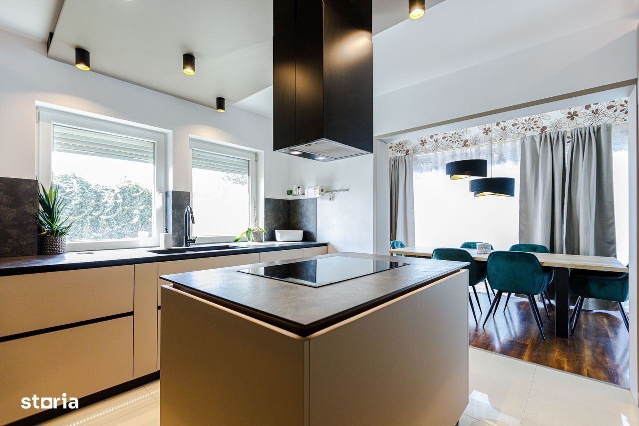 Vă propunem spre vânzare o casă individuală pe structură din lemn, situată în zona centrală din Săcălaz, foarte aproape de Lidl și Primărie. Proprietatea se remarcă prin dotările moderne, eficiența energetică și finisajele de calitate, fiind ideală pentru o familie care caută confort și un stil de viață premium. - 5 camere, dintre care 4 dormitoare - Dormitor matrimonial cu baie proprie și dressing - 3 băi - Pod amenajat - Car-port acoperit Dotări și finisaje: -Casă construită pe structură din lemn, calitate premium - Încălzire în pardoseală cu pompă de căldură + centrală pe gaz - Panouri solare 13 kW pentru eficiență energetică - Tamplarie PVC cu geamuri termopan și rulouri electrice - Parchet triplu stratificat - Izolație exterioară de 10 cm - Mobilată și utilată complet Curte și exterior: - Curte amenajată, pavată cu travertin - Piscină cu apă sărată și pompă de căldură dedicată - Sistem de irigare automatizat - Plante ornamentale mature - Supraveghere video Utilități: - Toate utilitățile racordate Această casă îmbină avantajele unei construcții pe structură din lemn - eficiență termică, durabilitate și confort - cu dotările moderne. Piscina cu apă sărată, echipată cu pompă de căldură, și curtea amenajată elegant creează un spațiu ideal pentru relaxare și viața de familie.