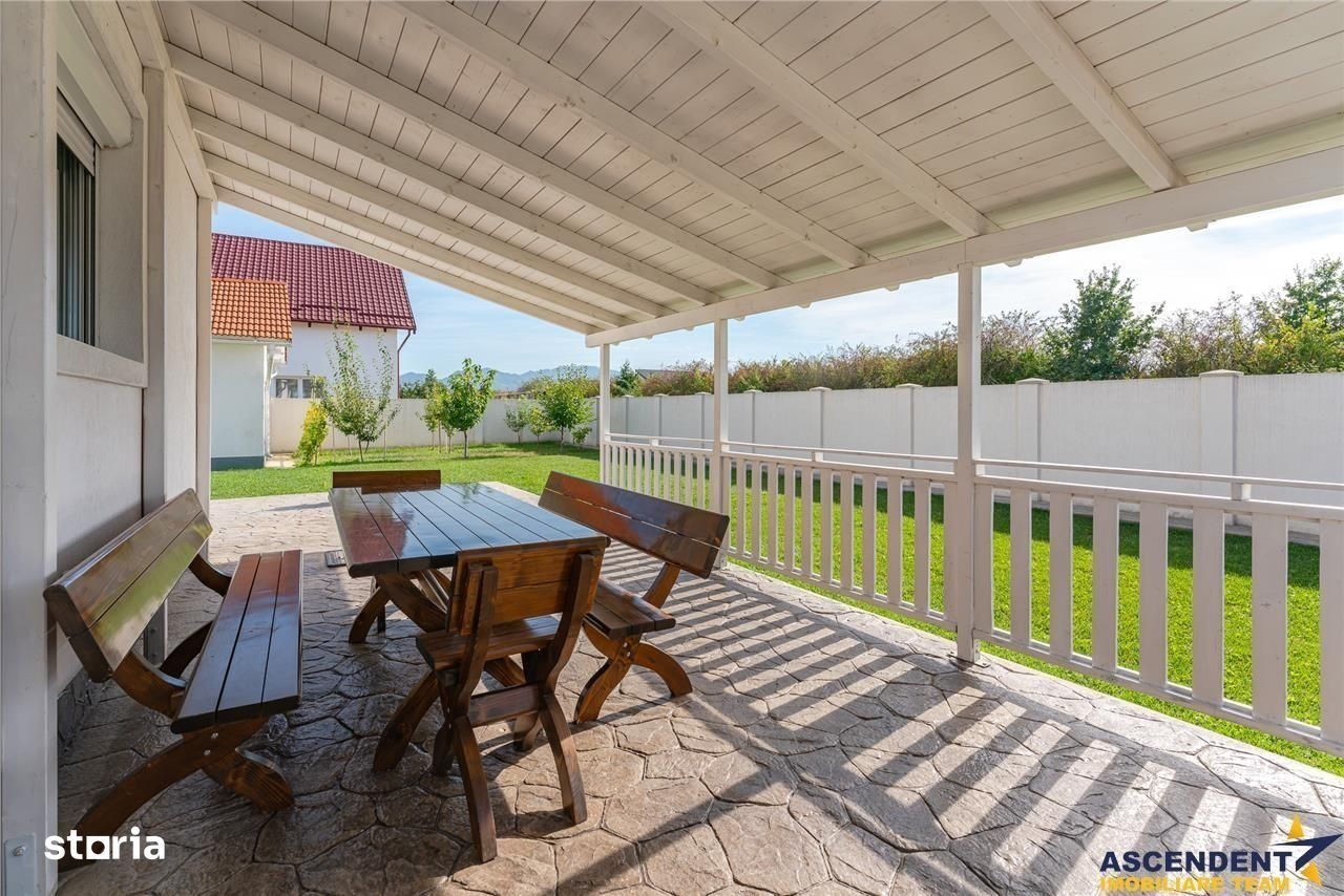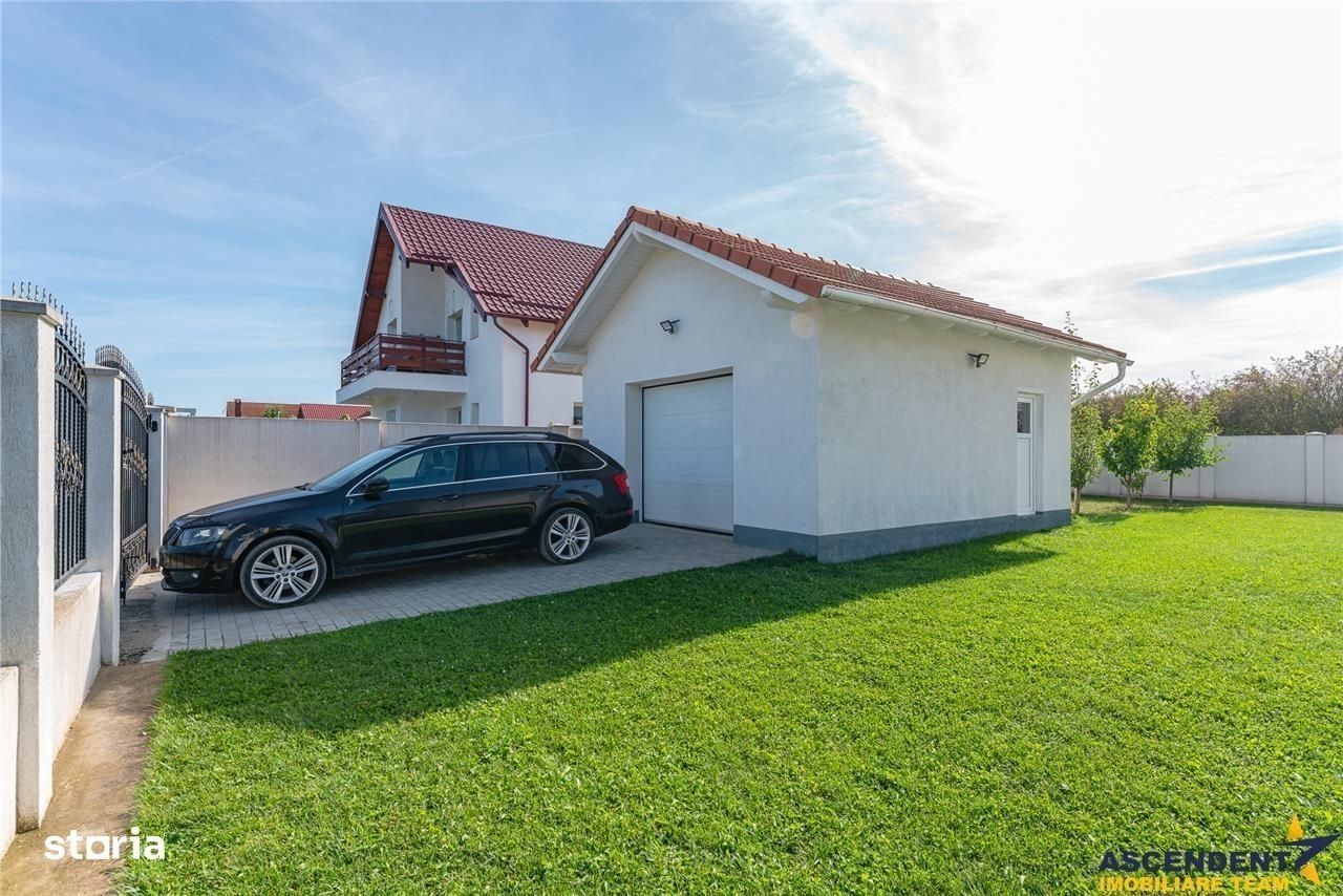 Comision cumparator 2% + TVA. ASCENDENT IMOBILIARE propune spre vanzare o proprietate deosebita, materializata printr-o vila dispusa pe parter si mansarda, situata in Sanpetru, pe strada Visinului, zona Livada, la baza Rezervatiei Naturale Lempes. Casa este construita in 2018 si este configurata astfel: - la parter avem living cu bucătärie open-space, din care se face si accesul pe terasa, dormitor birou, baie cu cada, spatiile auxiliare, apoi scara interioara care ne poarta spre etaj, unde avem doua dormitoare, deservite de o baie cu dus walk in. Structura este de caramida Porotherm, suprafata utila este de 100 mp, iar terenul aferent in suprafata de 486 mp, este imprejmuit cu zid de beton spre livada si decorat cu fier forjat spre strada. In gradina avem un frumos covor de gazon, o terasa cu mobilier rustic, masa si bănci din lemn masiv, iar in jurul casei avem trotuar alee si platforma din beton amprentat. Completeaza oferta garajul cu usa tip rulou, automata (electrica) cu telecomanda. Caracteristici proprietate: • Număr Camere: 3 dormitoare, living + bucătărie • Zona: Sânpetru Livada • Suprafată utila: 100 mp • Reper: Rezervatia Naturala Lempes, Calea Harmanului • Strazi: Pietruite si asfaltate. • Tip casa: Individuala • Suprafată Teren 500 mp. Curte: Individuala • Garaj • Număr Bai: 2 • An Constructie: 2018 • Acoperis: Tigla • Incalzire. Centrala electrica +boiler. • Calorifere: Da • Ferestre Casa: Term. PVC jaluzele rulante din aluminiu • Izolatii termice: Exterior • Materiale: Caramida Porotherm • Podele: Gresie in dormitoare parchet • Structura Casa: Caramida, stalpi si planseu beton armat • Utilitati: Curent trifazic, Fosa septica, PUT forat la 30 m. cu hidrofor Imobilul a fost achizitionat pentru rezidenta unei familii, insa se preteaza deasemenea ca si casa de vacanta. Va asteptam cu entuziasm sa treceti pragul viitorului dvs camin. Consultant dedicat ofertei, GEORGE MOSOR Telefon: