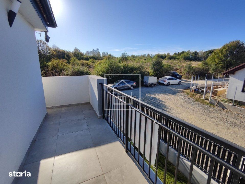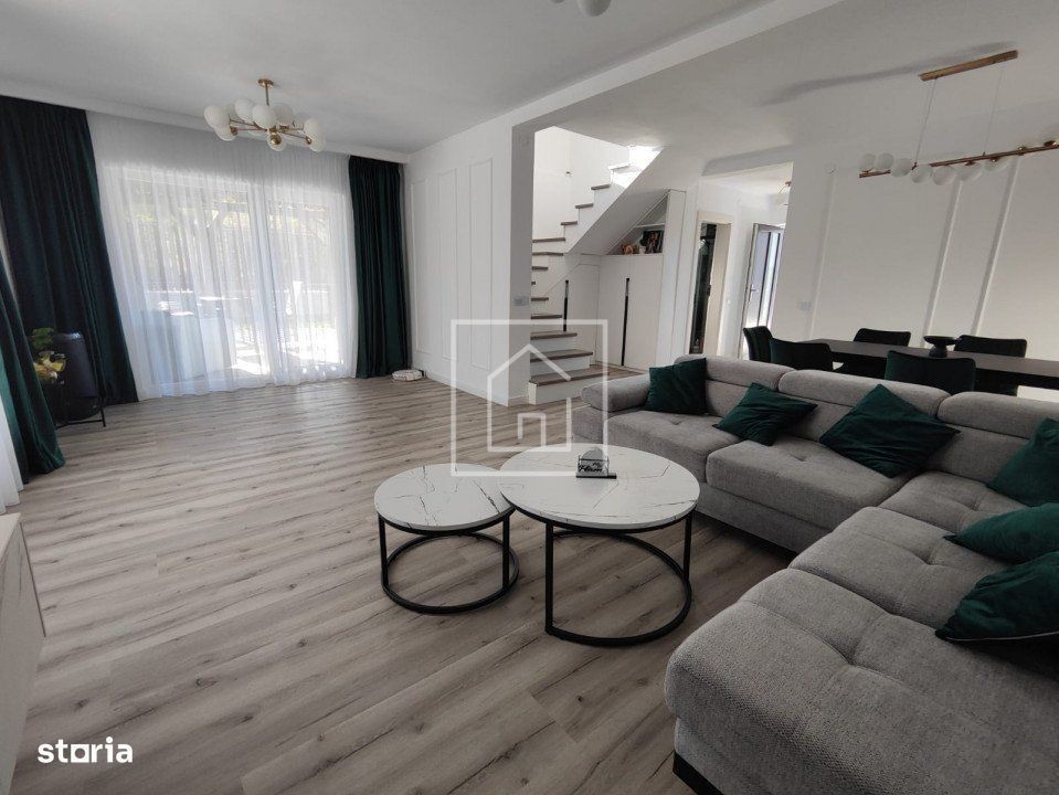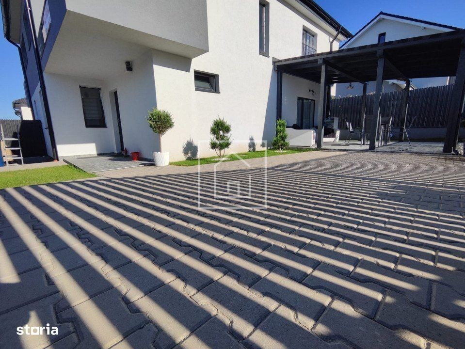 Casă modernă, gata de mutat - preț 243.000 € (prețul nu intră sub incidența TVA) Această locuință oferă tot confortul și funcționalitatea de care are nevoie o familie. Parter: - Hol de acces generos - Bucătărie separată, mobilată și utilată complet cu electrocasnice noi - Living spațios, luminos, ideal pentru timpul petrecut în familie - Baie modernă cu duș Etaj: - 3 dormitoare luminoase - Dressing mobilat - Baie cu cadă freestanding pentru relaxare - Balcon Exterior: - Curte amenajată cu pavaj, gazon, pomi decorativi și sistem automat de irigare - Terasă de 18 mp, perfectă pentru serile de vară Dotări moderne: - Încălzire în pardoseală cu parchet SPC - Întrerupătoare SMART, controlabile inclusiv de pe telefon - Scări iluminate - Spațiu dedicat pentru mașină de spălat și uscător - Sistem de supraveghere video - Pod izolat, spațios și util pentru depozitare Casa este complet finisată și pregătită pentru mutare imediată, fără investiții suplimentare.