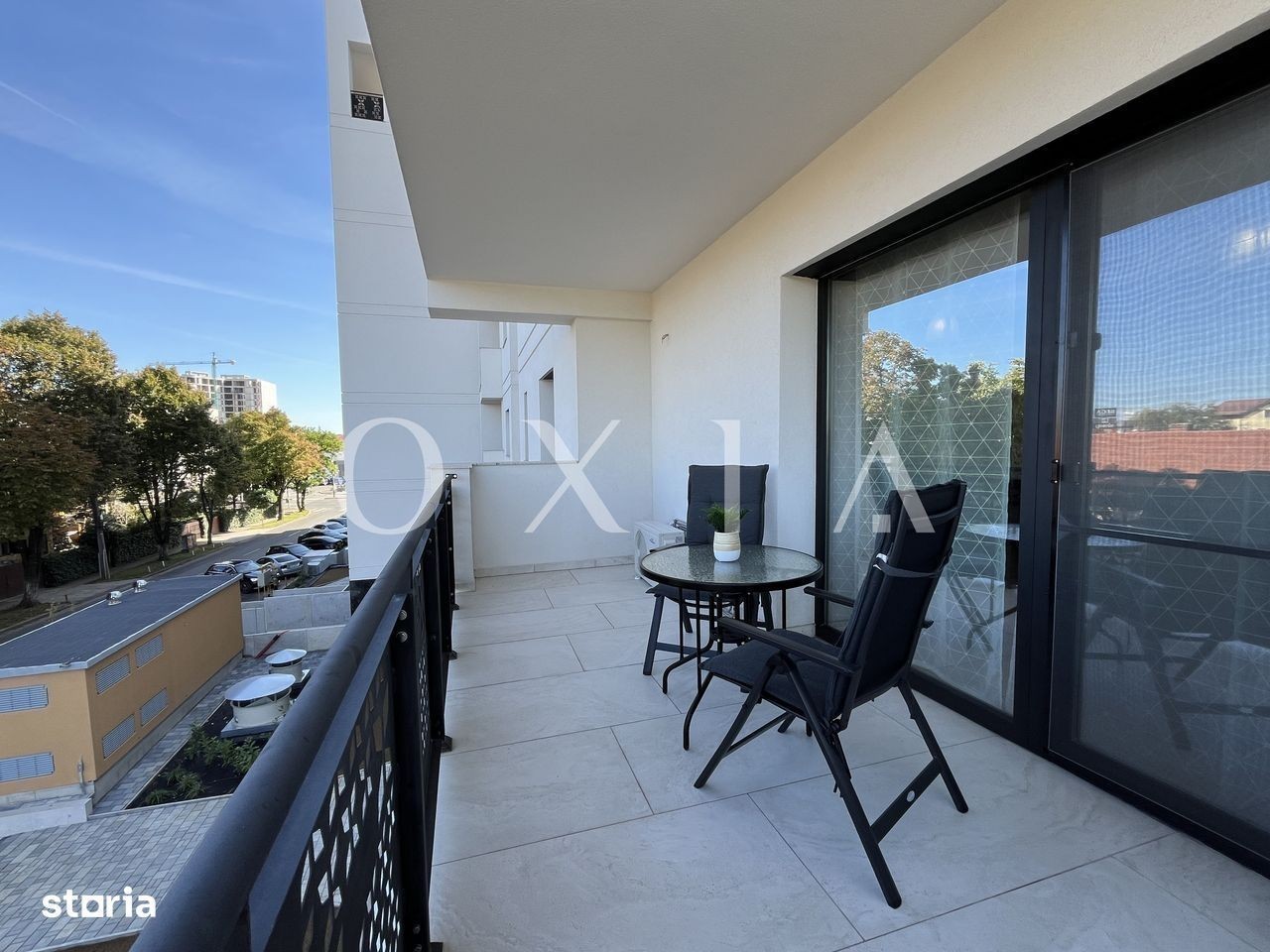 OXIA prezinta spre inchiriere apartament cu 2 camere, situat in Timisoara, complex rezidential Monarch (Circumvalatiunii), la etajul 2/6, imobil dotat cu lift, semidecomandat, cu suprafata de 55 mp utili+12 mp terasa, compartimentat astfel: Hol acces Baie dotata cu dus, bideu si geam Dormitor Living cu Bucatarie Open Space Terasa cu acces din living Acesta beneficiaza de amenajari ultramoderne si vedere panaromica spre oras. Confortul termic este asigurat prin intermediul centralei proprii pe gaz cu incalzire in pardoseala si cu ajutorul sistemului de climatizare, dispune de termostat ambiental in fiecare camera. Proprietatea se inchiriaza complet mobilata si utilata (masina de spalat vase, masina de spalat rufe, uscator de rufe, aspirator, etc) Pentru contract mai mare de 18 luni parcarea exterioara este gratuita, pentru o perioada mai mica se percepe taxa suplimentara de 50 euro/luna. Pret: 650 Euro/luna+Garantie+Comision Agentie ID Anunt: SX485 Pentru mai multe detalii despre aceasta proprietate, sau pentru stabilirea unei vizionari ne puteti contacta la numarul de telefon: