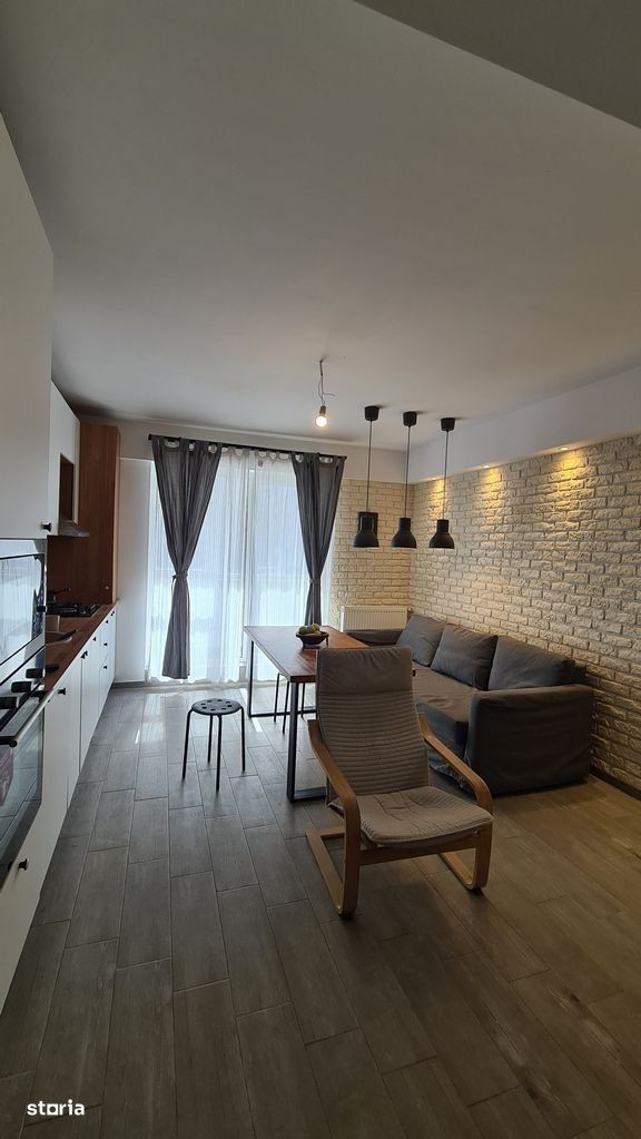 Apartament 2 camere cu grădină proprie și parcare subterană - complet mobilat și utilat, Popești-Leordeni, Strada Biruinței la prețul de 103000 euro net. Se oferă spre vânzare un apartament de 2 camere, decomandat, situat într-un bloc nou, finalizat în 2019, pe strada Biruinței, Popești-Leordeni. Proprietatea se află la parterul unui imobil modern cu 7 etaje și impresionează prin dotările sale premium și spațiul exterior privat. Cu o suprafață utilă de 52 mp, apartamentul este complet mobilat și utilat, fiind gata de mutare imediată. Livingul și dormitorul sunt amenajate cu bun gust, iar bucătăria este dotată cu electrocasnice moderne, oferind un confort sporit. Piesa de rezistență o constituie grădina proprie de 40 mp, prevăzută cu foișor, un spațiu ideal pentru relaxare, petreceri în aer liber sau un colț verde de liniște chiar lângă casă. Apartamentul dispune și de balcon cu acces direct către grădină. De asemenea, proprietatea include loc de parcare subteran, un avantaj semnificativ pentru siguranță și confort. Localizarea este excelentă - la doar 10 minute de mers pe jos de stația de metrou Berceni, ceea ce asigură conexiuni rapide către centrul Bucureștiului. Acest apartament reprezintă o alegere ideală pentru cei care caută un cămin modern, complet utilat, cu spațiu exterior privat și acces rapid la metrou.