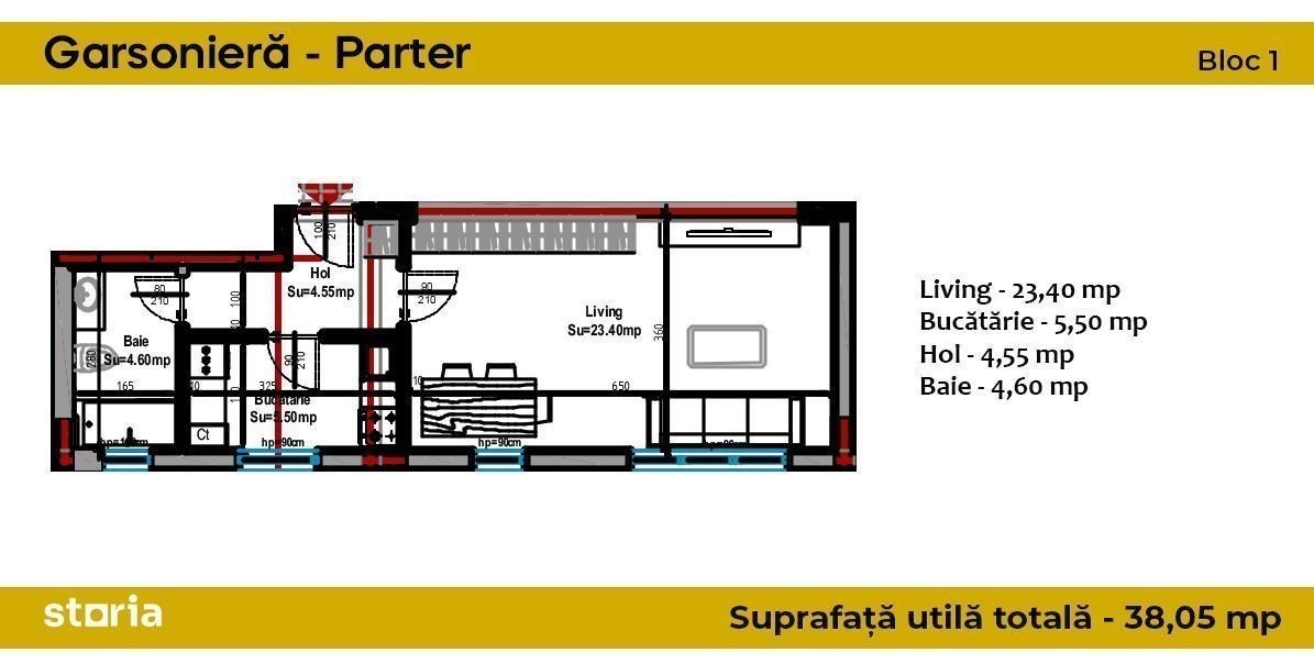 GARSONIERA - 35.6 mp - bloc nou P+6 Vă propunem spre vânzare o grasoniera moderna, cu o suprafață utilă de 35.6 mp, situat într-un imobil nou, cu regim de înălțime P+6.