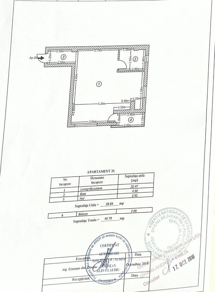De vânzare garsonieră mobilată/utialta spațioasă de 43 mp, situată la etajul 3 cu lift al unui imobil modern (P+4E+Pod), finalizat în 2018. • Bucătărie închisă • Centrală termică proprie + calorifere