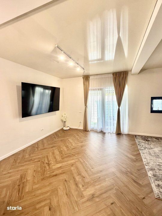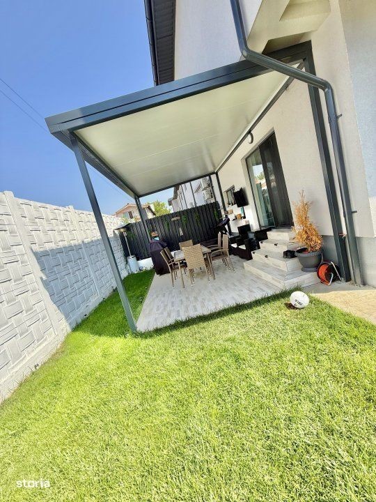 Prime Estates Agency vă propune spre vânzare o locuință modernă, parte dintr-un duplex finalizat în 2023, situată într-o zonă liniștită din Pantelimon. Proprietatea dispune de un teren de aproximativ 250 mp și o suprafață utilă de 118 mp, desfășurată pe parter și etaj. Compartimentare: -Parter: living spațios cu zonă de dining, bucătărie mobilată și complet utilată (plita, hotă, cuptor cu microunde, mașină de spălat vase și rufe), grup sanitar, acces către terasa acoperită și amenajată. -Etaj: două dormitoare matrimoniale fiecare cu baie proprie (unul cu cadă, celălalt cu duș walk-in), un dormitor pentru copii, balcon. Dotări și beneficii: -Încălzire în pardoseală și centrală proprie -Aer condiționat -Camere luminoase, finisaje moderne -Terasă acoperită și curte proprie Proprietatea este ideală pentru o familie care își dorește spațiu, confort și intimitate, într-o zonă cu acces rapid către București și facilități urbane. Pentru mai multe detalii sau vizionari nu ezitați sa ne contactați!