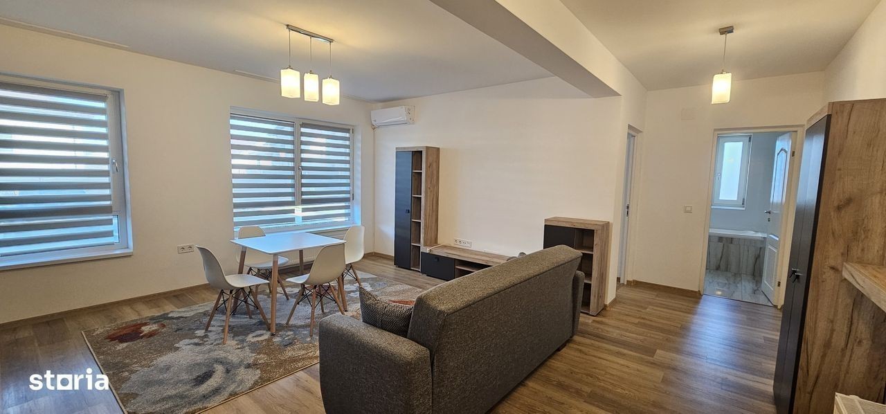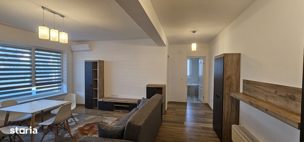 Agentia imobiliara Piedra va propune spre inchiriere un apartament, 2 camere, in bloc nou, cu parcare ( 2 locuri) in Cartierul Tineretului din Tiglari. Apartamentul are o suprafata de 47mp, se afla la parter si este format din living unit cu bucataria, hol, dormitor si baie. Apartamentul a fost mobilat si utilat complet in vara anului 2025. Bucataria este utilata cu : masina de spalat vase, masina de spalat rufe, cuptor, plita, hota, combina frigorifica. Exista si aer conditionat. Se inchiriaza pe termen lung, unor persoane fara animale de companie, la pretul de 400Euro. In pret sunt incluse cele 2 locuri de parcare.