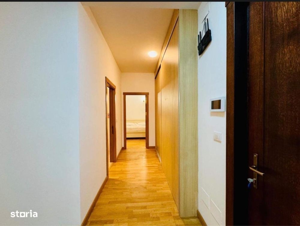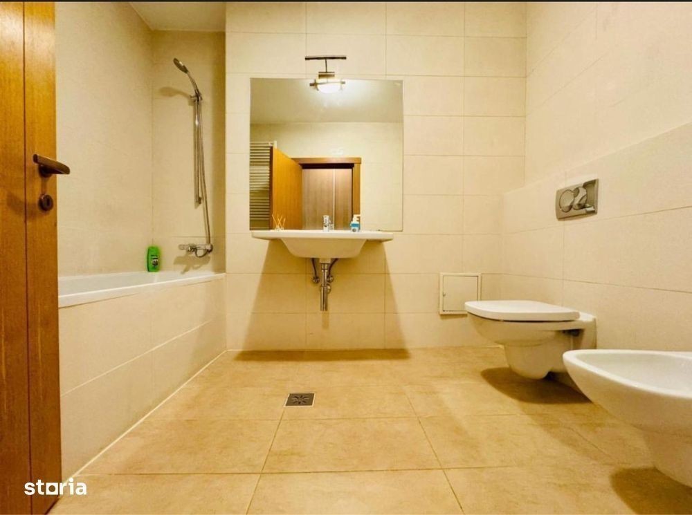 Va propunem spre inchiriere un apartament cu 2 camere dresing loc ee parcare, care are o vedere panoramica asupra orasului. Suprafata: 80 mp utili + 8 mp balcon Apartamentul este complet mobilat si utilat de un designer, toată mobila este la comanda, vine cu 2 TV-uri, masina de spalat vase, mașină de spalat rufe și uscător, cuptor, plită electrică, combina frigorifica, microunde, aer conditionat, video interfon. Incalzirea se face prin pardoseala. Este compartimentat astfel: - hol de acces - living - dormitor spatios + birou - bucatarie open space - baie cu cada - balcon deschis tip logie