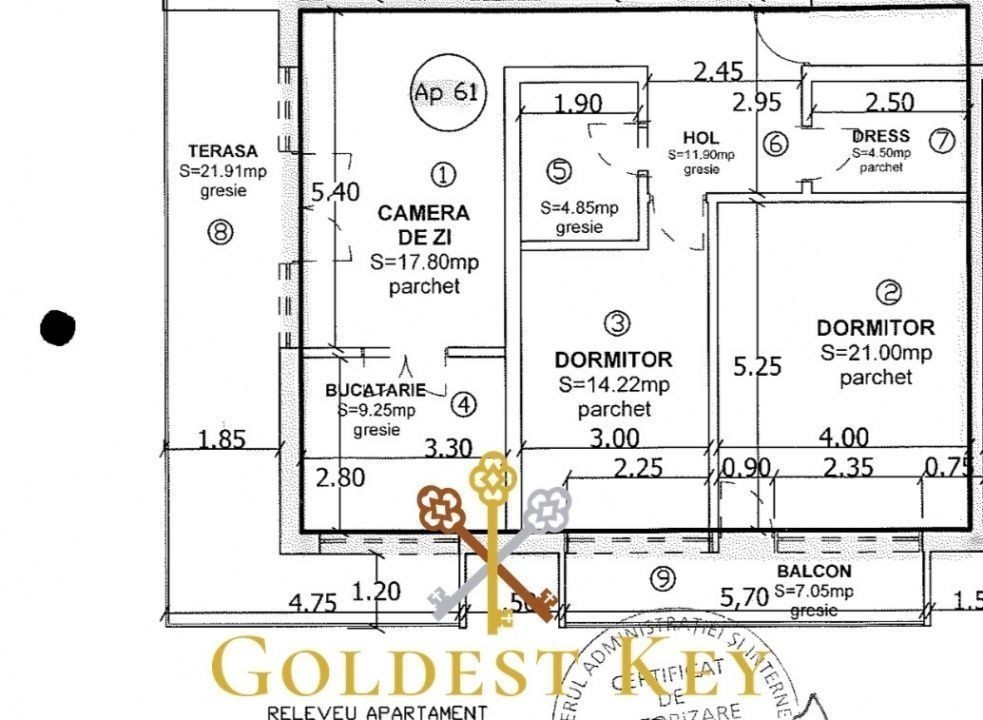 Apartament 3 camere, 83,5mp, 22mp terasa, 7mp balcon! Și parcare!Baci