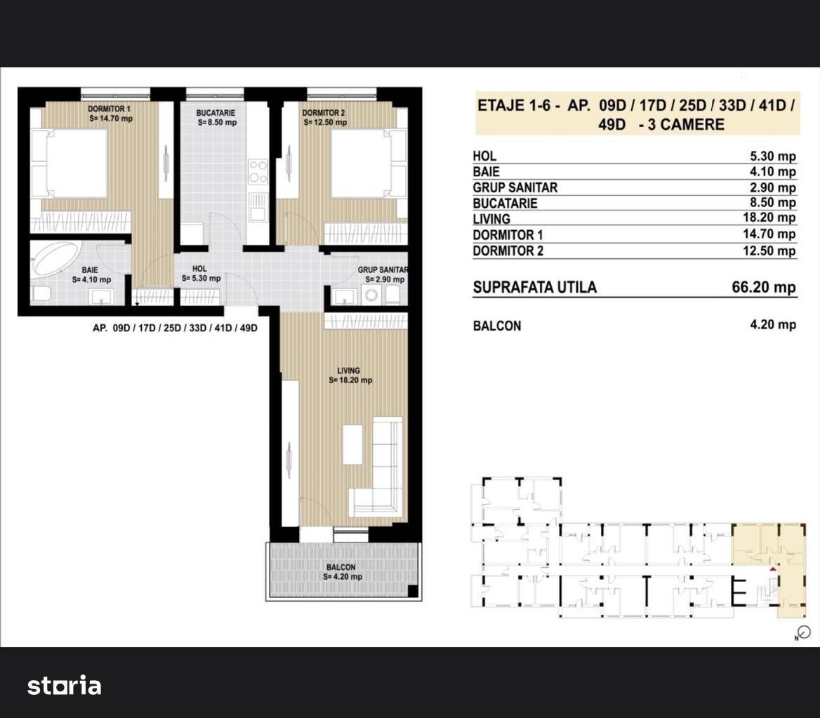 De vanzare apartament cu 3 camere decomandat, bucatarie inchisa, cu o suprafata totala de 70.4 mp, aflat intr un bloc in constructie, cu termen de finalizare in luna martie 2026, sector 4, Bucuresti, in apropiere de Grand Arena Mall. Statie autobuz in apropiere cu linie directa catre metrou Aparatorii Patriei.