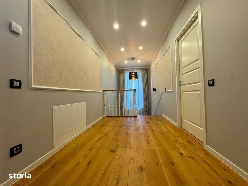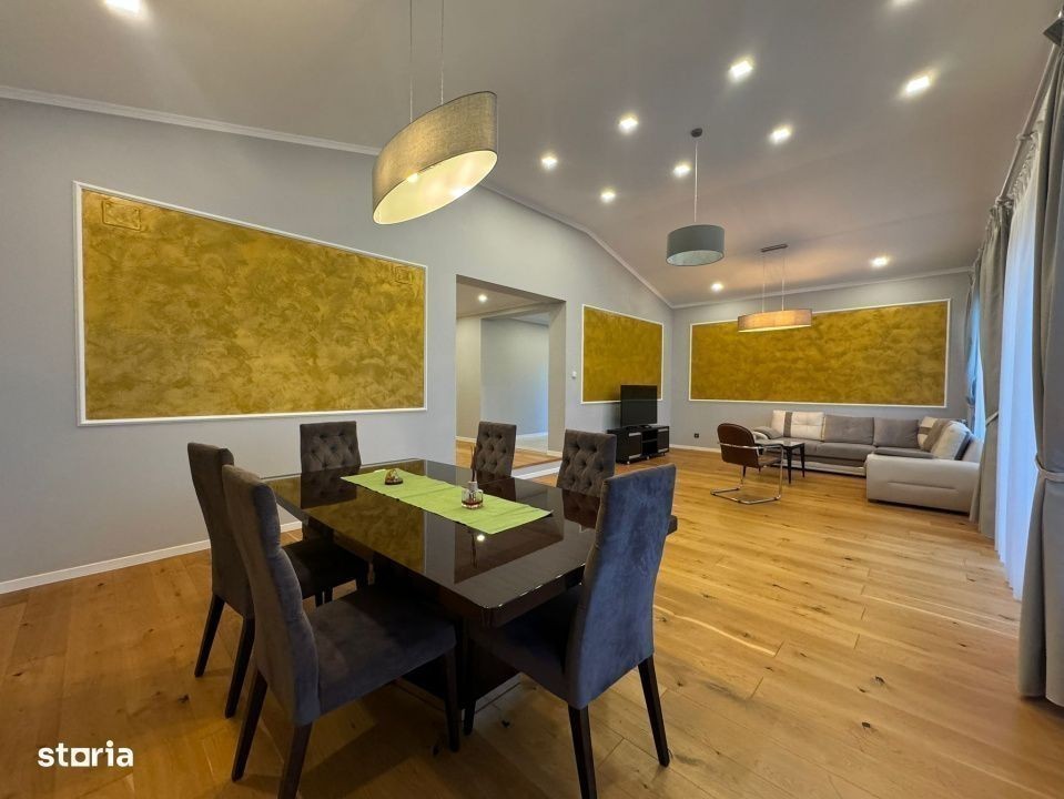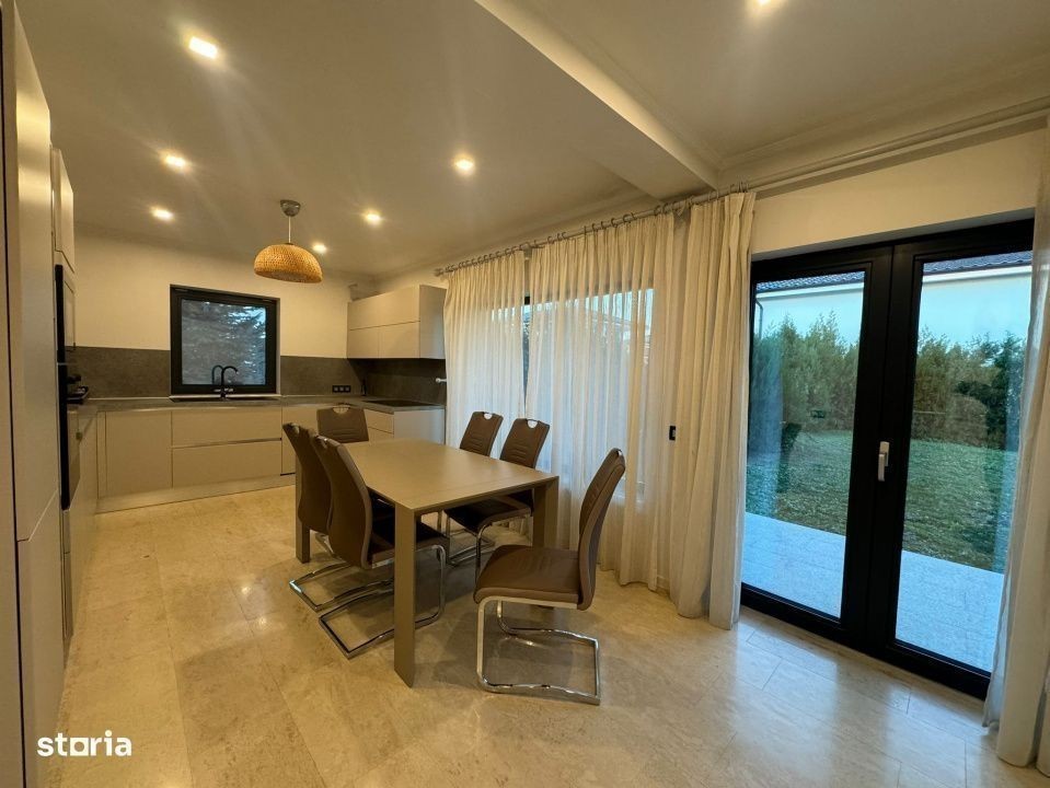 Comision 0 Oferim spre vanzare o casa moderna situata in Snagov, intr-o zona foarte linistita, perfecta pentru cei care doresc sa locuiasca aproape de natura, dar cu acces la facilitati de top. Aceasta proprietate impresioneaza prin dotarile sale moderne si confortul pe care il ofera. Caracteristici principale: Fatade ventilate de ultima generatie si pompe de caldura ce asigura o eficienta termica exceptionala, reducand semnificativ costurile de intretinere; Parter: un living spatios, cu o diferenta de nivel si o inaltime deosebita, ideal pentru o ambianta eleganta si relaxanta; o bucatarie inchisa, o camera ce poate fi folosita ca birou sau dormitor de oaspeti si o baie moderna; Etaj: un dormitor matrimonial cu baie proprie, doua dormitoare pentru copii, o a doua baie si un dressing generos. Facilitati premium in complexul privat: Complexul este complet securizat, cu poarta actionata prin telefon pentru acces usor si sigur; Spatiu comun dotat cu piscina, zona de gratar, dusuri si un ponton privat pentru ambarcatiuni, perfect pentru relaxare sau activitati pe lac. Aceasta casa reprezinta o oportunitate rara pe piata imobiliara din Snagov, oferind confort, intimitate si acces la facilitati moderne intr-o zona exclusivista. Pentru mai multe informatii sau pentru programarea unei vizionari, nu ezitati sa ne contactati. Ideala pentru familii care cauta o locuinta moderna intr-un cadru natural superb