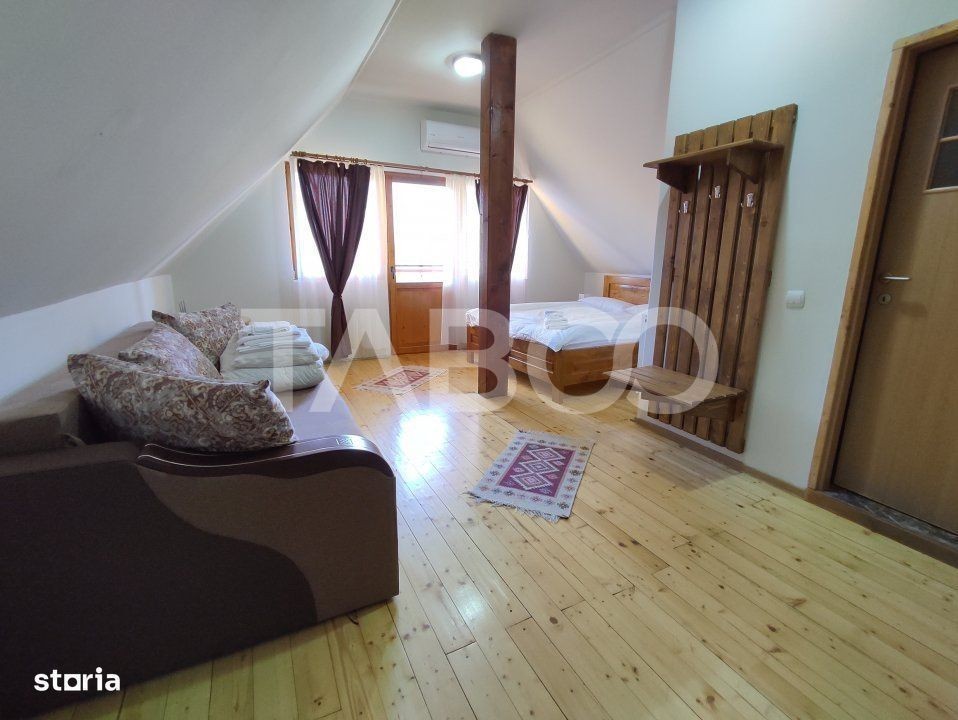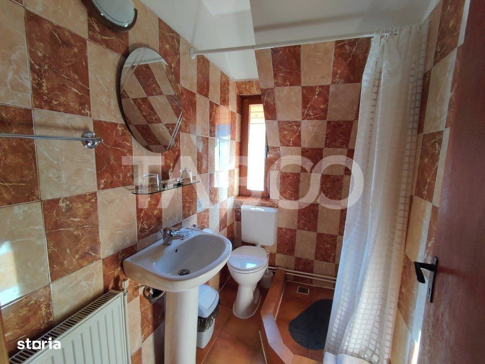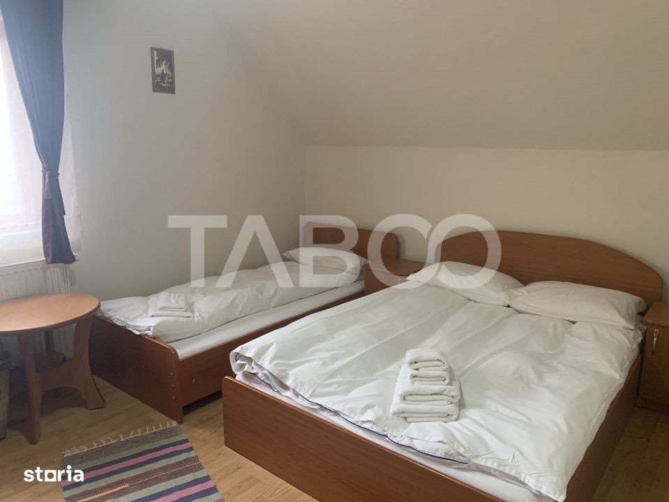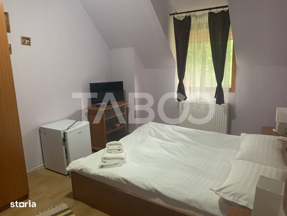 EXCLUSIVITATE! COMISION 0! Cauti o casa cu curte si terasa, unde sa te poti relaxa impreuna cu familia sau sa manageriezi propria afacere! TABOO Imobiliare iti propune aceasta casa de vanzare cu 9 camere la doar 15 minute de mers cu masina de Sibiu in Fantanele. Casa de vanzare din Fantanele a fost construita in anul 2007, renovata in 2021 si are suprafata construita de 776 mp. Casa de vanzare din Fantanele este o casa de tip individuala, cu un regim de inaltime Parter + 1 etaje/mansarda. Casa este compartimentata astfel: ~ Parter: hol, sala de mese, 2 bai, bucatarie,debara, terasa; ~ Etaj: hol, 7 dormitoare,7 bai, 2 balcon, 1 debara; ~ Mansarda: 2 apartamente spatioase, 4 balcoane, 2 bai, 1 debara; Terenul casei are o suprafata totala de 3600 mp, iar suprafata utila a casei este de 615 mp. Structura cladirii este din caramida si are sistem de incalzire cu centrala pe lemne, calorifere. Casa este mobilata complet si utilata. Casa are o curte libera cu 10 loc de parcare si suficient loc pentru zona de joaca a copiilor, 4 terase de relaxare si spatiu de depozitare. Finisajele interioare sunt clasice: ~ Usa intrare: lemn; ~ Usi interioare: celulare; ~ Tamplarie ferestre: lemn, termopan; ~ Podele: parchet, gresie, mocheta; ~ Finisaj: finisat; ~ Pereti: vopsea lavabila, faianta. Pe teren mai este construita o casa de locuit cu suprafata utila de 50 mpu formata din: 2 camere, 1 baie, 1 bucatarie si un hol + o pivnita formata din 2 incaperi in suprafata de 29 mpu si o magazie in suprafata de 72 mpu. Cu o capacitate de 24 de persoane este functionala in momentul de fata pentru primirea clientilor si dispune de toate imbunatatirile necesare pentru desfasurarea activitatii de cazare cum ar fi: panouri solare pentru incalzirea apei, generator, parchet laminat, gresie, faianta, 1 centrala pe lemne cu calorifere din otel, geamuri termopan cu tamplarie din lemn de cires, usi din lemn la interior, mobilier si electrocasnice. Zona in care se afla aceasta pensiune este una de maxim interes pe piata de turism, avand acces facil catre Sibiu ( 15 min ), Paltinis ( 30 min ), Transalpina ( 40 min ). Pret: 347.990€ Sună-ne acum și află detalii despre această proprietate de vanzare din Fantanele, dar și despre alte proprietăți potrivite pentru tine.