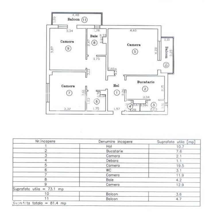 OXIA ofera spre vanzare apartament cu 3 camere decomandat, in Timisoara, zona Bucovina, situat la etajul 2 din 4, cu suprafata utila de 73 MP + doua balcoane (8.3 MP), compartimentat astfel: Hol acces Bucatarie inchisa Living 2 Dormitoare 1 Baie cu cabina de dus si geam pentru aerisire naturala 1 Baie de servici 2 Balcoane Apartamentul este complet renovat: instaltie electrica si sanitara schimbata, usi interioare celulare, usa intrare metalica antiefractie, gemuri PVC, mobilier MDF pe comanda, etc. Confortul termic este asigurat prin intermediul centralei proprii pe gaz cu calorifere si prin intermediul sistemului de climatizare de 18.000 BTU. Apartamentul se vinde complet mobilat si utilat (electrocasnice noi). PRET: 173 999 EURO + Comision Agentie Se accepta si achizitionarea prin intermediul unui credit bancar. Oferim consultanta financiara si juridica pe tot parcursul procesului. Pentru mai multe detalii sau pentru stabilirea unei vizionari, ne puteti contacta la numarul de telefon
