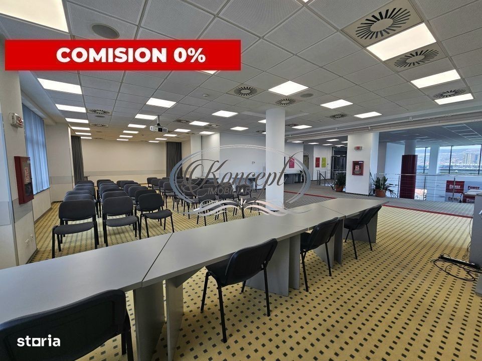 Koncept Imobiliare va propune spre inchiriere un spatiu de birouri situat in cladirea Power Business Center, una dintre primele cladiri clasa A din Cluj-Napoca, pozitionata strategic in zona semicentrala a orasului. Accesul facil atat pietonal, cat si auto, impreuna cu proximitatea fata de centrul orasului, recomanda imobilul companiilor care isi doresc vizibilitate si conectivitate. Spatiul disponibil are o suprafata utila de 179 mp, dispus in open space, cu inaltime interioara de pana la 3.5 metri si 2 grupuri sanitare proprii. Exista posibilitatea de recompartimentare, in functie de necesitatile chiriasului. Parcarea este generoasa, putand fi inchiriate pana la 15 locuri de parcare suplimentare la pretul de 120 euro + TVA fiecare. Interiorul este finisat cu pereti in lavabil alb, mocheta pe pardoseala si tavan fals casetat. Sistemul tehnic include instalatii 4 tevi pentru incalzire si racire, ventilatie naturala prin ferestre cu deschidere, acces pe baza de cartela, receptie si supraveghere video. Cladirea este recunoscuta pentru sistemul sau “open system” care permite adaptarea instalatiilor conform nevoilor chiriasilor. Suprafata se preteaza pentru multiple activitati precum birouri corporate, sala de fitness, activitati de tip workshop, cursuri pentru copii sau zone de coworking. In plus, chiriasii beneficiaza de acces la sala de evenimente a cladirii la un cost preferential, cu o capacitate intre 30 si 150 de persoane si terasa panoramica cu vedere 360 grade asupra orasului. Pentru informatii complete, programarea unei vizionari sau pentru a afla oferta noastra completa va stam la dispozitie telefonic, prin e-mail sau la sediul agentiei noastre, pe str. Aviator Badescu, nr. 19, Cluj-Napoca.