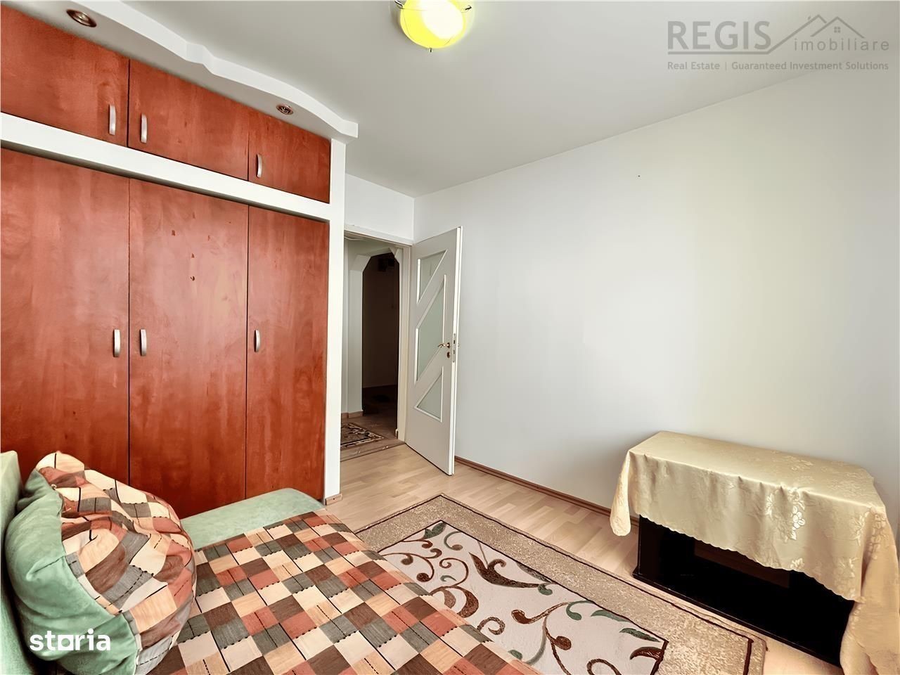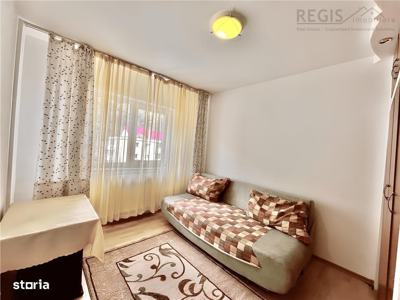 ID intern: 6020 REGIS Imobiliare va propune spre inchiriere un apartament in Racadau. Acesta se afla pe str. Valea Cetatii 27. Detalii: - Suprafata 74 mp utili - 3 camere cu 2 bai - Etajul 4 4 - Centrala proprie - Bloc izolat termic Compartimentare decomandata: - living, 2 dormitoare, bucatarie, hol, 2 bai si balcon - o baie de servici si cealalta cu cada Utilat cu: - argaz, hota, frigider, masina de spalat rufe si TV Zona: - Parcul La Iepure (700 m) - Statie autobuz Valea Cetatii (180 m) - Mall Magnolia (1,6 km) - Supermarket Mega Image si Profi (350 m) - Sala de sport Bear Fitness Center (600 m) - Scoala 25 (350 m) - Easy Box (350 m) Inchirierea se realizeaza prin plata de 1 luna chirie, 1 luna garantie si comision agentie. Comisionul este 50% + TVA din valoarea chiriei pe o singura luna. Va astept cu drag la vizionare!
