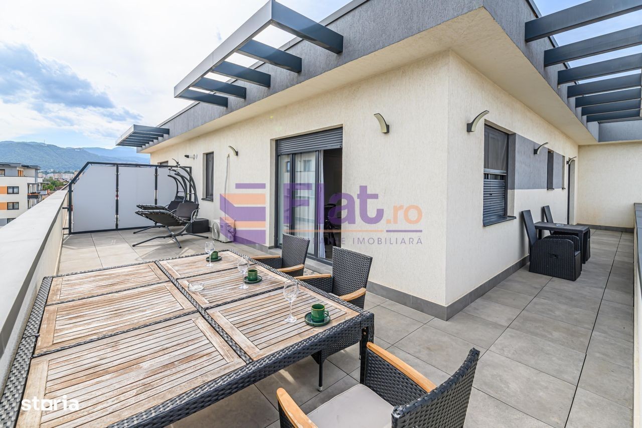 Descoperiți un penthouse modern și rafinat, situat la ultimul etaj (5/5) al unui imobil nou din cartierul Grandis Residence, Str. Ștefan Baciu nr. 64, Brașov - o zonă liniștită și exclusivistă. Detalii proprietate: Suprafață utilă: 90 mp Terasă panoramică de 50 mp cu priveliști superbe 2 dormitoare spațioase 2 băi (una cu cadă, una cu duș) Living open space cu bucătărie și zonă de dining Încălzire în pardoseală Rulouri exterioare electrice Geamuri triple pentru confort termic și fonic Se vinde complet mobilat și utilat, gata pentru a fi locuit sau închiriat imediat. Acest penthouse se remarcă prin designul modern, spațiile luminoase și terasa generoasă - un loc ideal pentru momente de relaxare sau pentru a petrece seri memorabile alături de familie și prieteni. Un apartament unic într-o zonă de top a Brașovului, care îmbină eleganța, confortul și liniștea. Pentru informatii suplimentare, nu ezitati sa ma contactati!