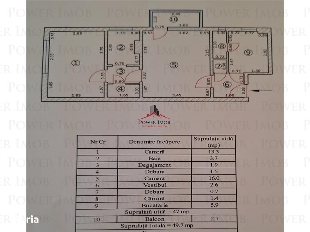 POWER IMOB BRASOV, propune spre vanzare un apartament cu 2 camere, semidecomandat, situat in Cartierul Astra din Brasov, zona Planete, cu o suprafata utila de 50 mp, într-un bloc izolat termic, la etajul 1 din 4. Apartamentul dispune de : balcon închis cu termopan, centrala termica proprie, geamuri termopan (inclusiv la baie), parchet din lemn masiv, usa metelica la intrare.