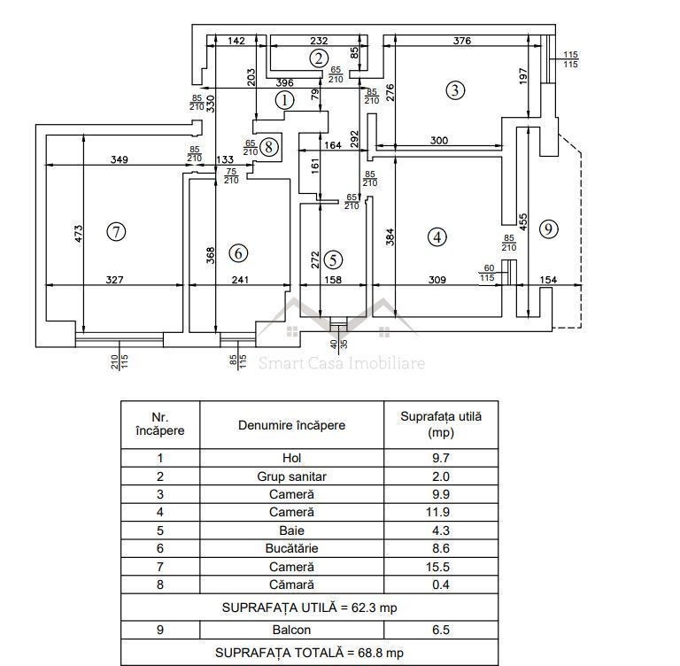 Va propunem spre achizitie un apartament cu 3 camere si 2 bai situat in zona Garii din Iasi. Imobilul se afla la etajul 8/8 al unui bloc din 1984 si are suprafata de 69mp. Apartamentul necesita renovare si refacuta hidroizolatia. Zona este foarte buna pentru o familie, deoarece avem spatii verzi, gara, parcuri, scoli, locuri de parcare, magazine langa bloc, transport in comun. Apartamentul dispune de: -geamuri si balcon inchis cu termopan -2 bai din care una cu geam si cada Pret: 98.900 euro negociabil Va asteptam la vizionare!