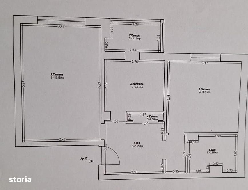 LB. Invest Imobiliare va aduce in prezentare un apartamentu cu doua camere, decomandat, amplasat la etajul 3 in zona Lipovei. Cu o suprafata de 53 mp, imobilul este compartimentat astfel: