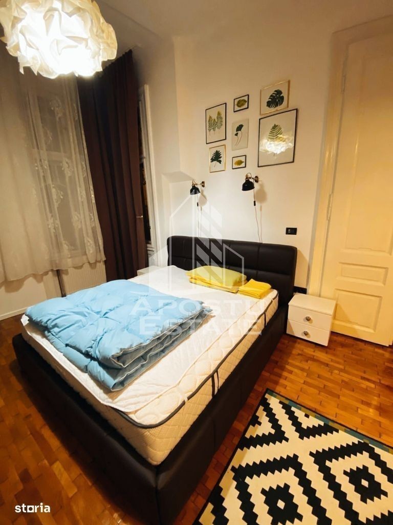 APOSTU ESTATE va ofera spre inchiriere un apartament cu 3 camere, situat la etajul 1 intr-un bloc cu regim de inaltime P+2, in zona Centrala. Imobilul are o suprafata utila de 103 mp si este compartimentat astfel: - Hol de acces. - Bucatarie mobilata si utilata. - Dormitor spatios cu birou. - Living room luminos. - Dormitor matrimonial cu dressing - Baie de servici - Baie principala dotata cu cabina de dus si cada. Alte detalii : - Confortul termic se realizeaza cu ajutorul centralei proprii, incalzirea fiind prin calorifere. - Apartamentul este dotat si cu o unitatea AC. Va asteptam cu drag la o vizionare! Cod Intern :CP2756589 APOSTU ESTATE offers for rent a 3-room apartment, located on the 1st floor of a building with a height regime of P+2, in the Central area of Timișoara. The apartment has a usable area of 103 sqm and is divided as follows: Entrance hall Fully furnished and equipped kitchen Spacious bedroom with office area Bright living room Master bedroom with dressing room Guest bathroom Main bathroom with bathtub and shower cabin Other details: Heating provided by individual gas boiler, through radiators Air conditioning unit for extra comfort The property is located in an excellent area, close to points of interest, shops, and important institutions, making it ideal for a family or for those who appreciate the comfort and accessibility of a central location. We look forward to welcoming you for a viewing! Internal Code: CP2756589