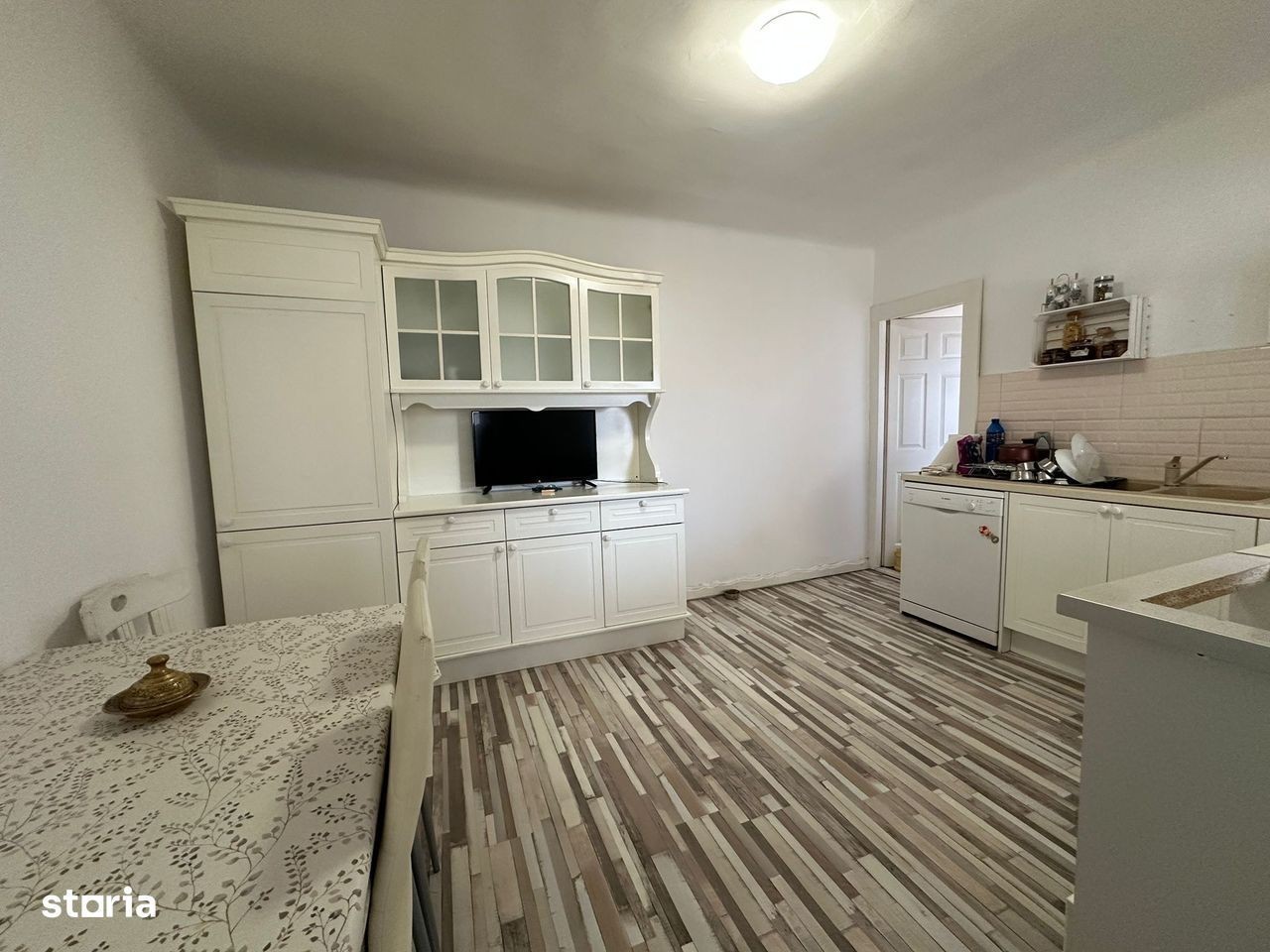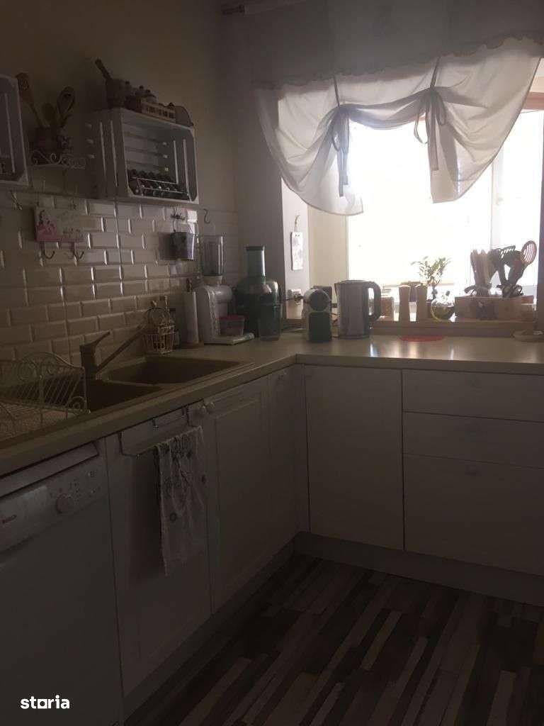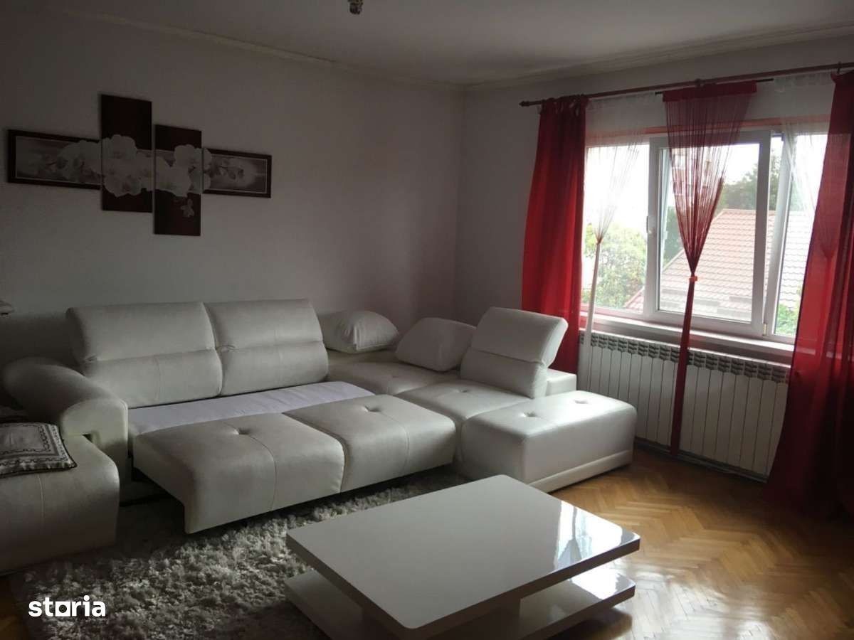 Ofer spre închiriere apartament la casa, etajul 1. Are 3 camere (2dormitoare și o sufragerie) + încă una care poate fi folosită ca hol sau birou. Casa renovată,izolata, mobilată, (bucătăria este și utilată complet), o cămara și o baie spațioase. Are centrală proprie pe gaz, aer condiționat, filtre de apa. Bucătăria dispune de mașina de spălat vase,aragaz si frigider. In baie este mașina de rufe și cadă. De asemenea,casa dispune de o terasa proprie. Curtea este comuna.Intrarea in fiecare apartament se face separat, facturile utilităților sunt de asemenea separat ( sunt ceasuri de apa,gaz,lumina pe fiecare apartament) Casa are camere mari și luminoase.Nu se accepta animale in casa si nici in curte.Exista loc de parcare in fata casei fără taxe.
