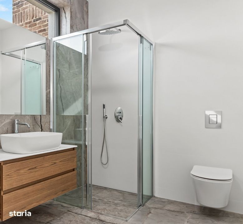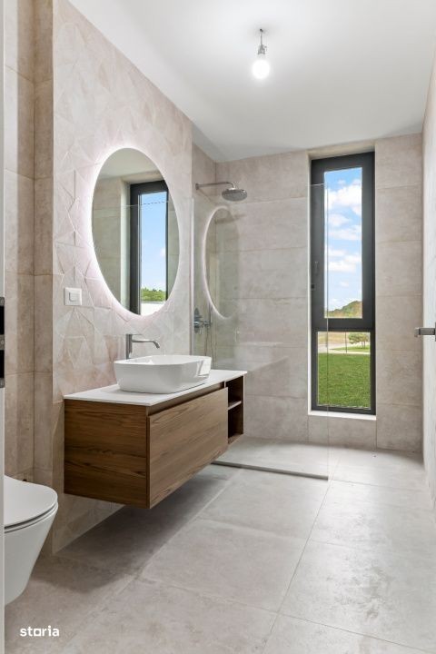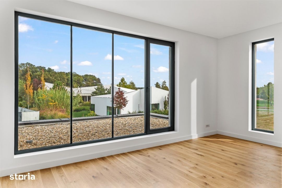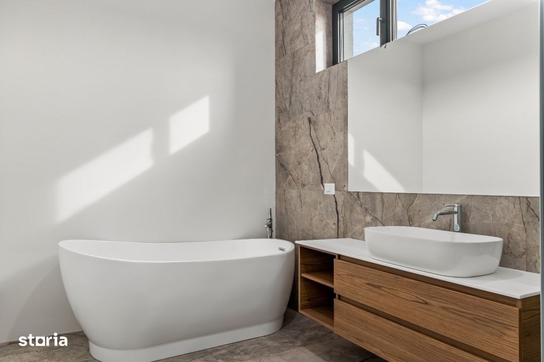 Casa SOL este o locuinta premium, situata intr-un ansamblu rezidential de prestigiu, Dumbrava Vlasiei. Proiectata intr-un stil arhitectural contemporan, aceasta proprietate imbina functionalitatea cu eleganta, oferind un spatiu generos, confortabil si eficient energetic Caracteristici principale Suprafata utila: 318 mp Teren: 959 mp Parter: living cu dining si bucatarie open-space, birou, baie, spatiu tehnic, garaj dublu, terasa acoperita Etaj: trei dormitoare matrimoniale, fiecare cu dressing si baie proprie, spalatorie, debara Detalii tehnice si finisaje Structura solida: cadre de beton armat si zidarie din caramida Porotherm Tamplarie premium: ferestre Cortizo cu geam tripan 4 seasons, protectie solara si filtrare UV Incalzire si racire eficiente: pompa de caldura aer-apa Hitachi, incalzire in pardoseala si aer conditionat tip duct Finisaje de inalta calitate: ceramica Porcelanosa, parchet triplu-stratificat Ter Hurne, usi interioare Lebo Design interior minimalist: scari placate cu piatra naturala, balustrade din sticla securizata, bai elegante cu walk-in shower si cada freestanding Facilitati si avantaje Gradina privata amenajata, sistem de irigatie integrat Statie de incarcare pentru autovehicule electrice (optional) Posibilitatea instalarii de panouri fotovoltaice si piscina exterioara Infrastructura moderna, paza permanenta, servicii de intretinere si salubritate in complex Conectivitate optima: drumuri asfaltate, iluminat public, internet prin fibra optica Aceasta proprietate reprezinta o alegere ideala pentru cei care cauta un camin exclusivist, construit la cele mai inalte standarde de calitate, intr-un mediu sigur si bine organizat. Pentru detalii suplimentare si programarea unei vizionari, va rugam sa ne contactati