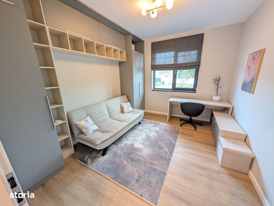 Va oferim spre achizitie fara comision o locuinta superba de 114mp pe parter, localizata in complexul The 8 Residence din Balotesti. Casa este finalizata in 2024, detine un teren de 510mp, si se vinde complet mobilata si utilata, exact ca in poze. Asa cum v-am obisnuit: - toate ofertele Monga Imobiliare sunt fara comision din partea cumparatorului - pentru ca iubim transparenta, toate preturile afisate de Monga Imobiliare includ TVA (daca se aplica). Pretul afisat de noi este intotdeauna pretul final pe care il vei achita. Acceseaza Monga Imobiliare (Monga RO) pentru mai mai multe poze si pentru intreg portofoliul nostru de case si apartamente din Otopeni, Tunari, Balotesti, Corbeanca, Pipera si chiar nordul Bucurestiului. Punctele forte al acestei case sunt foarte multe: - mobilare si utilare de calitate, gata pentru mutare imediata - nu a fost niciodata locuita - localizata intr-un complex premium (The 8 Residence) cu spatii de joaca si o comunitate deosebita pentru o familie - acces usor catre spatii comerciale, DN1, A3, Pipera, nordul Bucurestiului Casa a fost amenajata de proprietari pentru inchiriere; ulterior au decis sa o vanda. Despre spatiu: Accesul se face intr-un hol spatios cu loc generos pentru haine. De aici ajungem in holul principal, ce comunica cu o camera tehnica, cu zona de living cu bucatarie deschisa (35mp open space) si cu zona pentru dormit. In zona de dormit avem un dormitor matrimonial cu dressing si baie, inca doua dormitoare si o baie. Camera tehnica contine centrala, masina de spalata, spatiu generos de depozitare, acces catre pod. Terasa acoperita de 18mp se acceseaza din living. In fata casei avem doua locuri de parcare. Curtea este amenajata cu gazon, chiparosi decorativi, sistem de irigatie smart, magazie pentru depozitare. Alte detalii: - conectata la gaz si curent. Apa si canalizare sunt facilitati comune ale complexului, cu posibilitatea de conectare la reteaua publica in perioada urmatoare. - dedurizator - cenrala proprie Saunier Duval cu incalzire in pardoseala - cadre din beton și zidărie Porotherm; garanție dezvoltator pe toată durata de viață a construcției - placa de beton peste parter si pod circulabil pe toata suprafata, ideal pentru depozitare. - izolatie 15cm la solicitarea speciala a proprietarilor (standardul in complex este de 10cm) - tamplarie tripan la solicitarea speciala a proprietarilor (standardul in complex este termopan simplu) - 4 aparate de aer conditionat (in fiecare camera) - parchet SPC, gresie / faianta rectificata - sistem de alarma si camere de supraveghere - mobilare si utilare premium conform poze. Complexul rezidential va ofera o comunitate linistita in care sa va bucurati impreuna cu familia. Detine iluminat public, drumuri de 9m latime, terenuri de sport, loc de joaca. Locatia permite acces rapid catre transport in comun, DN1, A3/A0, soseaua Pipera - Tunari Va asteptam la vizionare pentru a descoperi toate aceste detalii si multe altele ale acestei proprietati cu adevarat deosebite. Apeleaza cu incredere la Monga Imobiliare. Suntem alaturi de tine pana la finalizarea tranzactiei si te ajutam sa treci cu incredere si in cunostinta de cauza prin toti pasii necesari. Te putem ajuta in pregatirea documentelor, selectia notarului, obtinerea finantarii, si altele. Te asteptam sa ne contactezi.