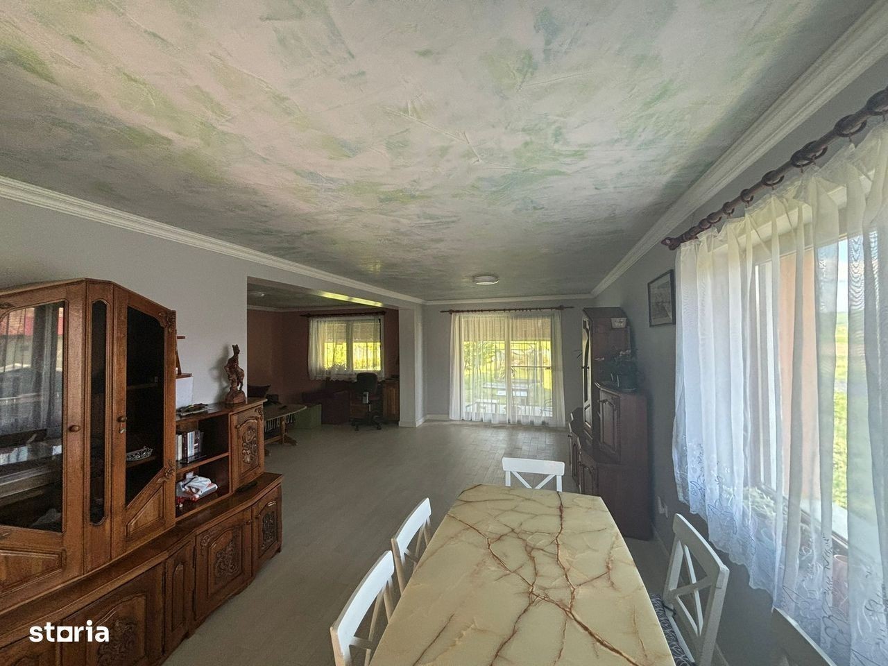 COD INTERN ANUNT V/4256H NU SE PERCEPE COMISION DE LA CUMPARATOR! Echipa Mao Imobiliare, propune spre vanzare, casa cu 4 camere intr-o zona linistita a orasului ferita de agomeratia zilnica, situata pe strada Bisericii, in Santana de Mures la o distanta de 4 km fata de centru orasului Tg. Mures. Casa are o suprafata construita de 320 mp și suprafața utila de 225 mp plus un teren aferent de 1,250 mp. Constuctie este finalizata din anul 2016 si dispune de toate utilitatile. Imobilul are o terasa acoperita de 40 mp si este construit pe 2 nivele, fiind compartimentat astfel: la parter - livingul, bucataria, o baie si o debara la etaj - 3 dormitoare (un dormitor cu dressing propriu), 1 baie si 2 terase (2 dormitoare au iesire la terasa proprie); Detalii constructie: caramida poroterm, izolatie de 10 cm, acoperis din tigla, 2 centrale pentru incalzire (una pe gaz, una pe lemne), geamuri termopan din lemn, parchet, graesie si faianta, incalzire in pardoseala, garaj incalzit cu intrare in casa. Gradinita cu program prelungit se afla la 100m Scoala gimnaziala se afla la 100m Statie pentru transport in comun la 300m Magazine 500-1000 m Pretul de vanzare al proprietatii este de 267,000 euro. Pentru mai multe informatii ne puteti contacta la numerele de telefon: