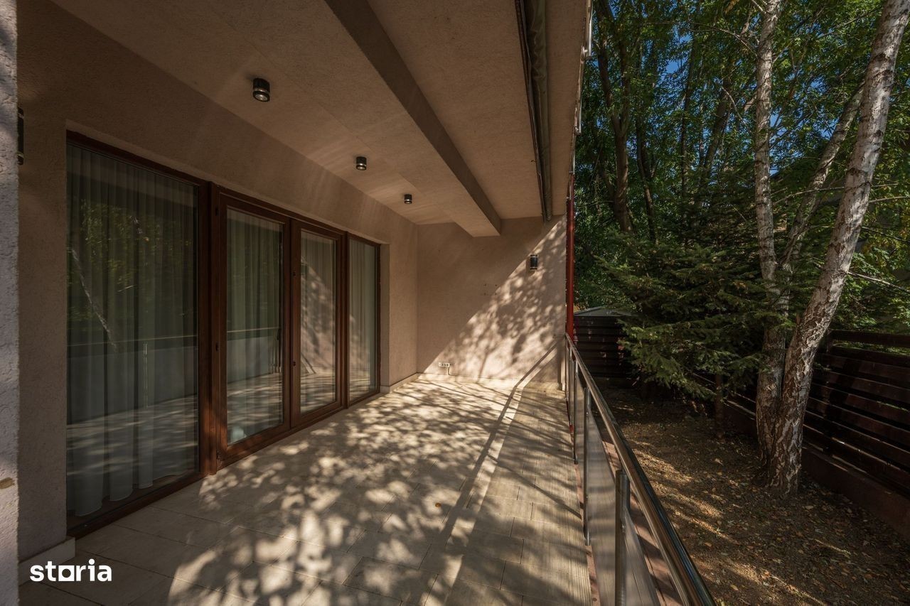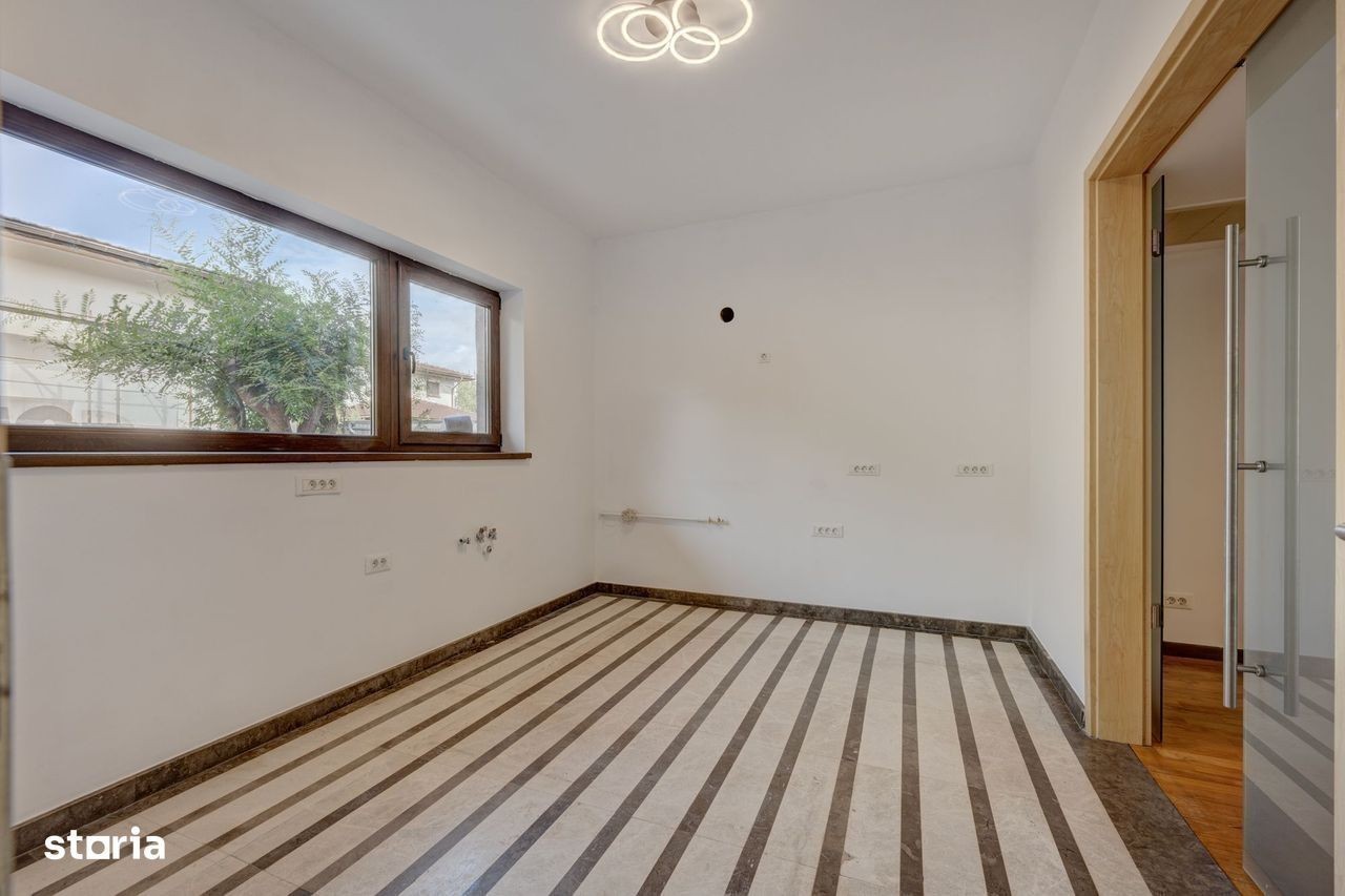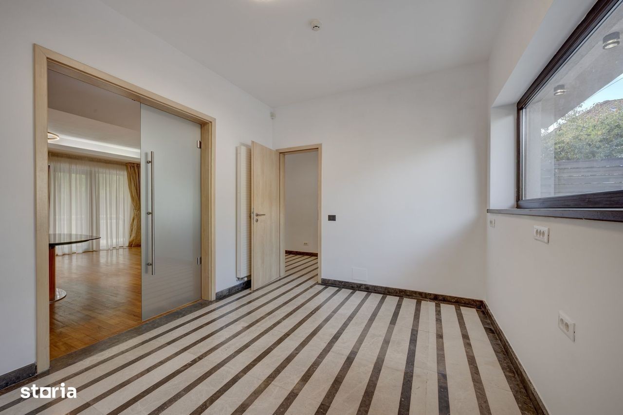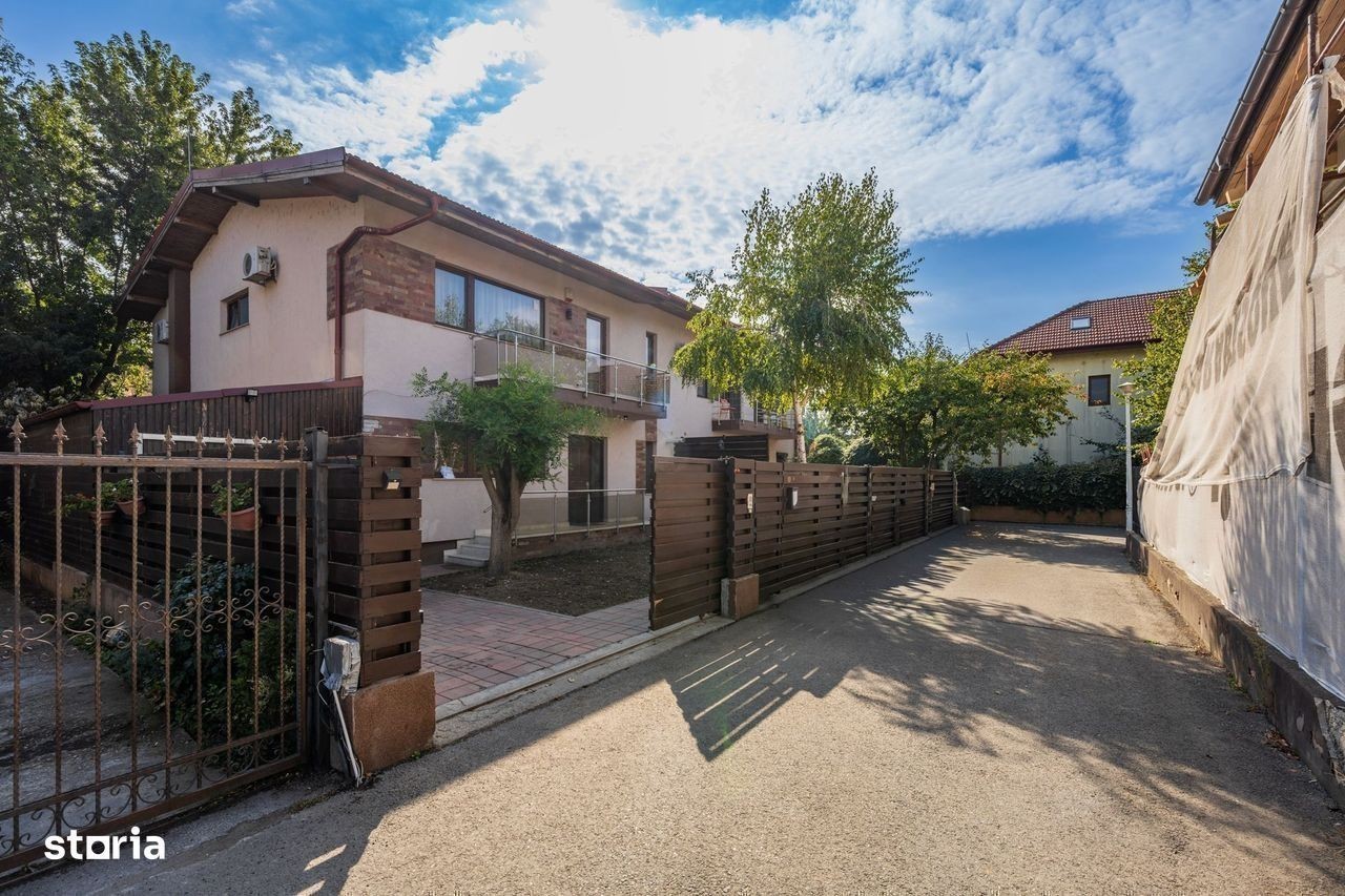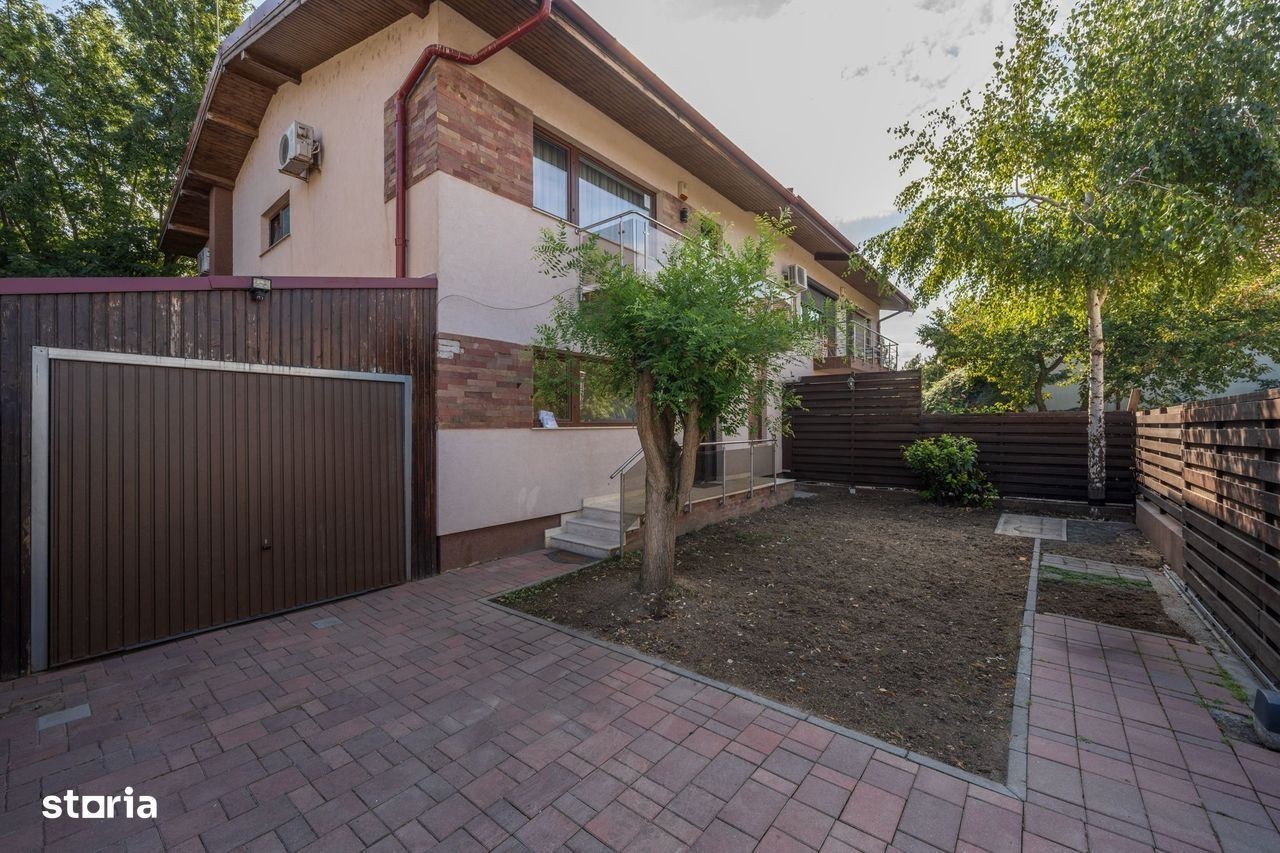 Descoperă un nou nivel de confort și rafinament într-o locuință situată în inima unei comunități selecte - Complexul Enculescu, Dobroești. Această proprietate deosebită este amplasată pe strada Nicolae Bălcescu, într-un complex privat, complet locuit, recunoscut pentru comunitatea sa unită și prietenoasă, aleile asfaltate și atmosfera liniștită. Regim de înălțime: Parter + Etaj (P+1) Suprafață construită: 200 mp Suprafață utilă: 161 mp Garaj pentru 2 mașini + 1 loc de parcare în curte Pod/spațiu de depozitare Centrală proprie în condensație și contorizare separată Bucătărie spațioasă și închisă Compartimentare funcțională: Parter: living generos, bucătărie închisă, baie, birou/dormitor de oaspeți, spații de depozitare Etaj: în configurația actuală sunt două dormitoare foarte mari, ambele mobilate, și două băi. Inițial, la etaj au fost trei dormitoare, iar compartimentarea se poate reface foarte ușor dacă se dorește încă o cameră suplimentară. Pardoseli din piatră naturală / granit Parchet din lemn masiv Băi complet mobilate și utilate Proprietatea oferă un echilibru ideal între funcționalitate, estetică și calitate, fiind perfectă pentru familii sau persoane care caută un cămin într-o zonă sigură, liniștită și exclusivistă. Poziționată într-o comunitate bine închegată, complexul oferă intimitate, vecini deosebiți și un stil de viață aparte, într-un cadru modern și bine organizat.