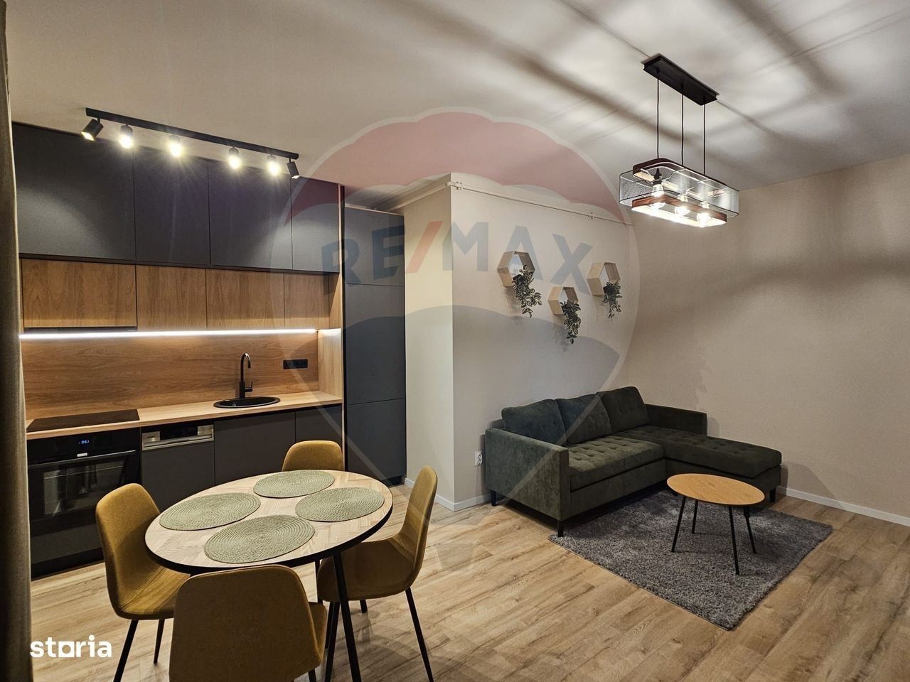Apartament modern, luminos și complet echipat - Strada Cetății, Florești Situat într-o zonă excelentă din Florești, pe strada Cetății, acest apartament se remarcă prin finisajele sale de calitate superioară, mobilierul realizat la comandă și dotările moderne care oferă confortul ideal pentru un stil de viață contemporan. Cu o suprafață utilă de 44,2 mp și o terasă generoasă de 5,5 mp, apartamentul este situat la etajul 1 al unui imobil nou, cu o scară interioară spectaculoasă, spațioasă și finisată cu materiale premium. Spațiul este luminos și primitor, beneficiind de orientare vestică și ferestre mari, cu geam tripan, care asigură lumină naturală pe tot parcursul zilei. Confortul termic este garantat de încălzirea în pardoseală și centrala proprie, iar designul interior îmbină eleganța cu funcționalitatea. Apartamentul este complet mobilat și utilat modern, toate piesele de mobilier fiind realizate la comandă pentru a valorifica fiecare spațiu. Bucătăria este echipată cu electrocasnice Gorenje de ultimă generație: plita electrică pe inducție, cuptor electric, hotă, mașină de spălat vase și combină frigorifică încorporabilă. Accesul către oraș este rapid și facil, iar în imediata vecinătate se găsesc magazine, stații de transport în comun și alte facilități care fac viața de zi cu zi comodă și eficientă. Proprietatea dispune și de parcare subterană, disponibilă contra cost. Un apartament ideal pentru cei care caută confort, calitate și o locație excelentă - totul într-un spațiu modern, gata de mutare! Pretul este 91.000 Euro+ TVA