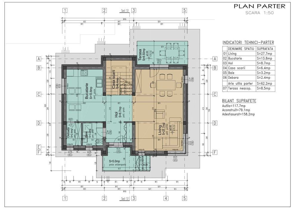 Persoană fizică (tel. 07********30) oferă spre vânzare o casă individuală situată la intrarea în Chinteni, pe strada Nucului, în spatele magazinului Profi. Imobilul este amplasat într-o zonă aerisită și liniștită, cu o priveliște deosebită. Construcția a fost edificata si finalizata la sfarsitul anul 2024 și se află pe un teren cu suprafața totală de 472 mp. Casa este realizată din cărămidă eficientă energetic, cu termosistem de 15 cm, tencuială decorativă siliconată, rezistentă la umiditate, și tâmplărie PVC marca Salamander, cu geam tripan (3 foi de sticlă). Încălzirea este asigurată de centrală termică pe gaz, cu încălzire în pardoseală atât la parter, cât și la etaj. Imobilul se predă la stadiul de semifinisat, având: - pereți tencuiți și gletuiți (două straturi), - șapă turnată, - instalații electrice și sanitare trase pe poziții. Casa este racordată la toate utilitățile: apă, canalizare, curent electric, gaz. Accesul este facil, strada și trotuarul fiind asfaltate până la proprietate. Designul construcției valorifică poziționarea și orientarea acesteia, oferind camere luminoase cu o insorire optimă. Aspectul este elegant, modern, perfect integrat în peisajul zonei. Compartimentare: Parter - Suprafață utilă: 62,2 mp - Living: 27,7 mp - Bucătărie: 8,7 mp - Hol: 6,4 mp - Casa scării: 3,2 mp - Baie: 3,2 mp - Debara: 2,4 mp - Terasă neacoperită: 8,5 mp Etaj - Suprafață utilă: 55,5 mp - Dormitor 1: 14,2 mp - Dormitor 2: 12,4 mp - Dormitor 3: 11,0 mp - Baie: 3,2 mp - Dressing: 3,2 mp - Hol: 2,4 mp - Balcon: 11,45 mp Suprafațe: - Suprafață construită la sol (Sc): 79,1 mp - Suprafață desfășurată (Sd): 158,2 mp - Suprafață utilă totală (Su): 117,7 mp (tel. 07********30)