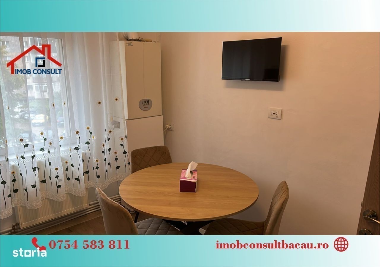 Echipa Imob Consult Bacau va prezinta spre inchiriere un apartament cu 2 camere, modern, complet mobilat, situat la etajul 3 dintr-un bloc bine întreținut. Dotări și avantaje: