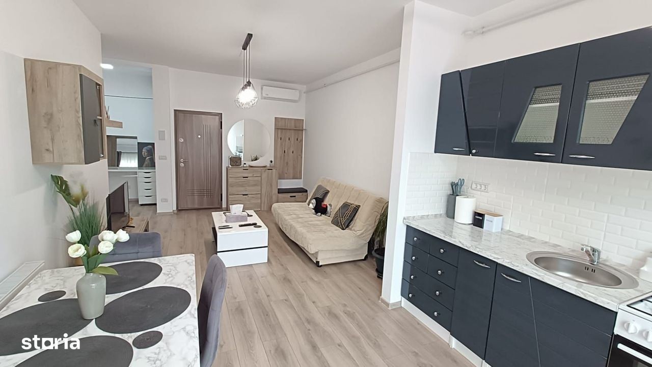 District Real Estate va propune spre inchiriere un apartament apartament modern, semidecomandat, luminos și complet mobilat, situat în Zona Aradului, la etajul 2 al unui bloc nou și îngrijit. Suprafață utilă: 50 mp Compartimentare: hol, bucatarie deschisa cu living, dormitor, baie, balcon deschis Loc de parcare inclus. Dotări și facilități • Centrală proprie • Dormitor complet mobilat • Living cu zonă de dining + TV • Bucătărie deschisă utilată (cuptor cu microunde, frigider) • Mașină de spălat haine • Balcon deschis - perfect pentru relaxare Localizare • 10 minute până la stația de autobuz • Acces rapid la magazine și alte puncte de interes din zonă Dacă ești interesat să vezi aceast apartament, nu ezita să îți planifici o vizionare. Te așteptăm să descoperi noul tău cămin! Apartamentul se închiriaza la prețul de 500 Euro + 1 lună garanție ( 500 Euro ) Pentru vizionări și alte detalii vă stăm la dispoziție.