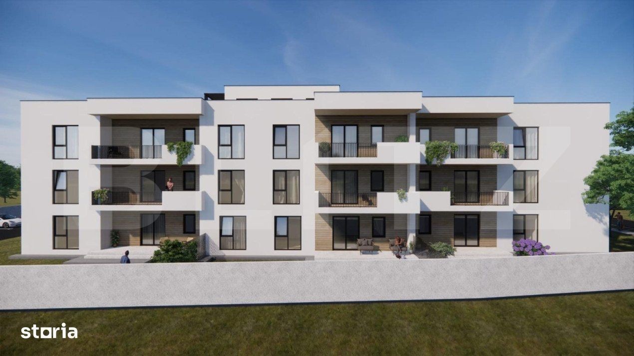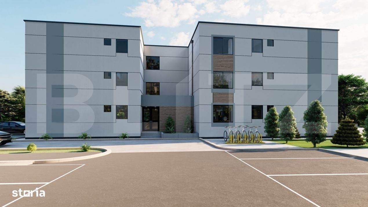 Descoperă complexul rezidențial de apartamente cu 2 și 3 camere,cu suprafețe cuprinse între 52mp și 70 mp plus terase ample de 5,5 mp. în care vei putea sa te relaxezi după o zi de munca istovitoare. Structura solidă din cărămidă asigură rezistența și durabilitatea apartamentelor tale. Izolația exterioară de polistiren de 15 cm, te protejează de zgomot și fluctuațiile de temperatură, oferindu-ți o atmosferă liniștită și confortabilă în interior. Cu sistemul de încălzire în pardoseală, vei experimenta mereu o temperatură plăcută în locuința ta, indiferent de anotimp. Geamurile termopan de 4 anotimpuri, cu 3 sticle, și profil de 81 mm, îți oferă izolație termică și fonică excelentă, asigurându-ți un mediu liniștit și eficient energetic. Pereții finisați cu tencuială și două straturi de glet îți permit să personalizezi fiecare cameră în stilul tău preferat. Fie că vrei să amenajezi un spațiu modern sau unul mai tradițional, ai libertatea de a crea interiorul perfect pentru gusturile tale. Apartamentele sunt livrate semifinisate, oferindu-ți ocazia să le amenajezi după propriul gust și stil. Cu un spațiu util de până la 70mp fiecare apartament dispune de două dormitoare confortabile, un hol de intrare primitor, o bucătărie și living open space, două băi și o terasă generoasă de până la 5,5 mp unde poți petrece momente de relaxare și socializare. Și nu trebuie să îți faci griji în privința locului de parcare! Fiecare apartament beneficiază de un loc de parcare inclus în preț, astfel încât să ai mereu acces facil și sigur la mașina ta. Pentru loc extra se achita 3500 euro. Acest complex rezidențial cu regim de înălțime P+2, câte 5 apartamente pe fiecare nivel, reprezintă alegerea ideală pentru cei care caută un cămin modern, sigur și confortabil. Acum ai ocazia să-ți achiziționezi propriul apartament în acest complex rezidențial în rate. Oferim opțiuni flexibile de plată, astfel încât poți cumpăra cu numerar, credit bancar sau prin programul "Prima Casă". Nu rata ocazia de a-ți achiziționa propriul apartament în acest complex rezidențial. Alege calitatea, confortul și siguranța unei locuințe moderne. Contactează-ne acum pentru mai multe informații și pentru a programa o vizionare personală a apartamentului visurilor tale!